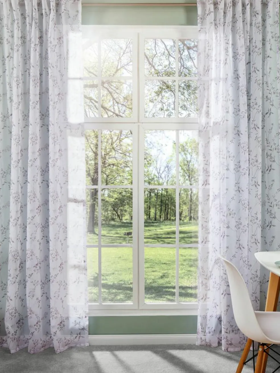 Frischer Look in angesagter Pastellcolorierung. Halbtransparenter Stoff aus 100 % Polyester. Gardinenband mit verdeckter Schlaufe. Waschbar bis 30°C. Oeko-Tex Standard 100. Paket enthält je einen Vorhang.