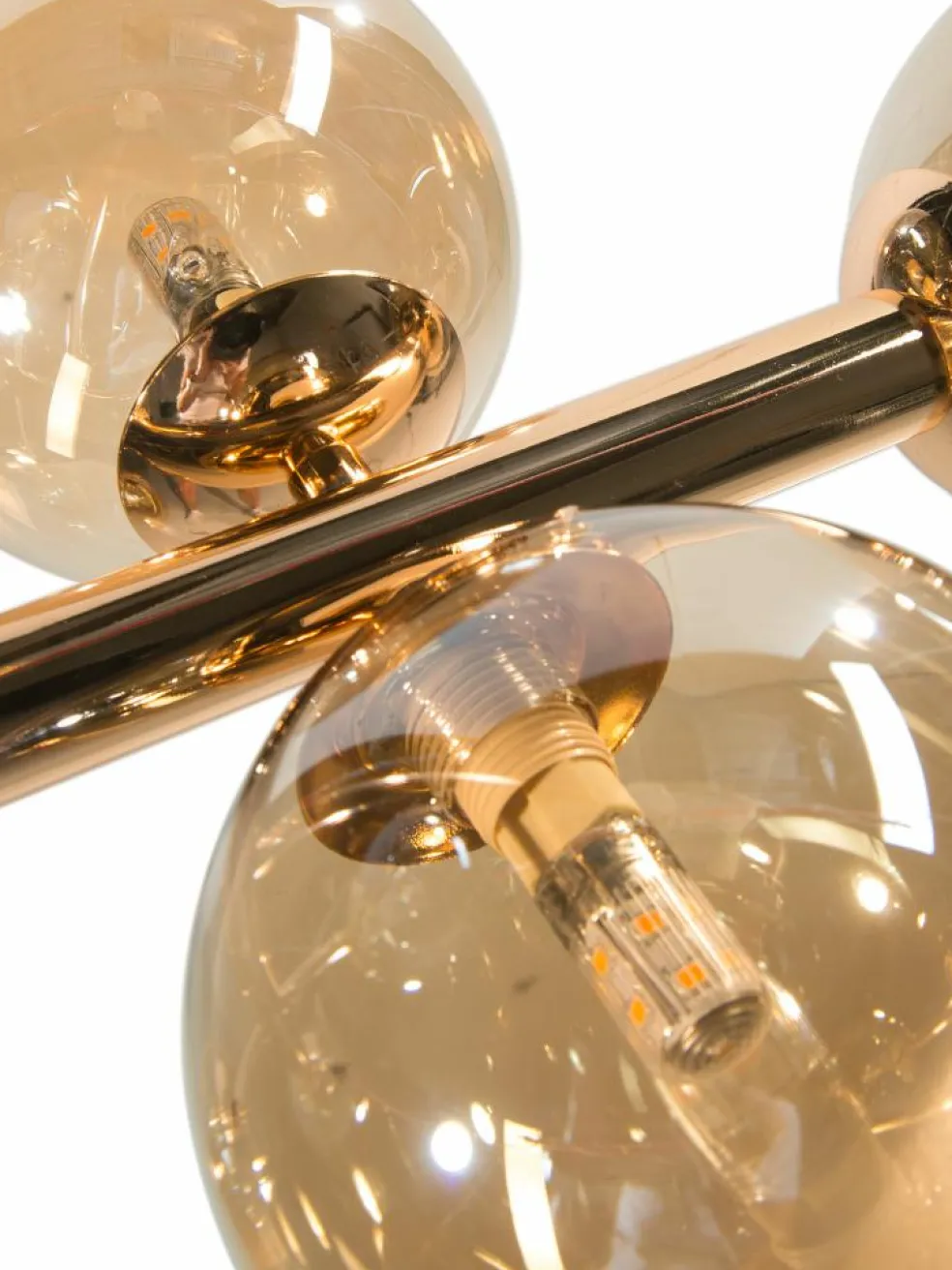 Diese beeindruckende Hängeleuchte, gefertigt aus edlem Messing und warmem Amberglas, verleiht jeden Raum in eine einladende Atmosphäre. Besonders für minimalistische Einrichtungsstile stellt diese Pendelleuchte eine luxuriöse Bereicherung dar und zieht garantiert alle Blicke auf sich. Die Hängelampe ist höhenverstellbar.