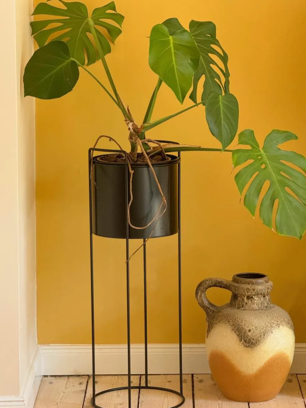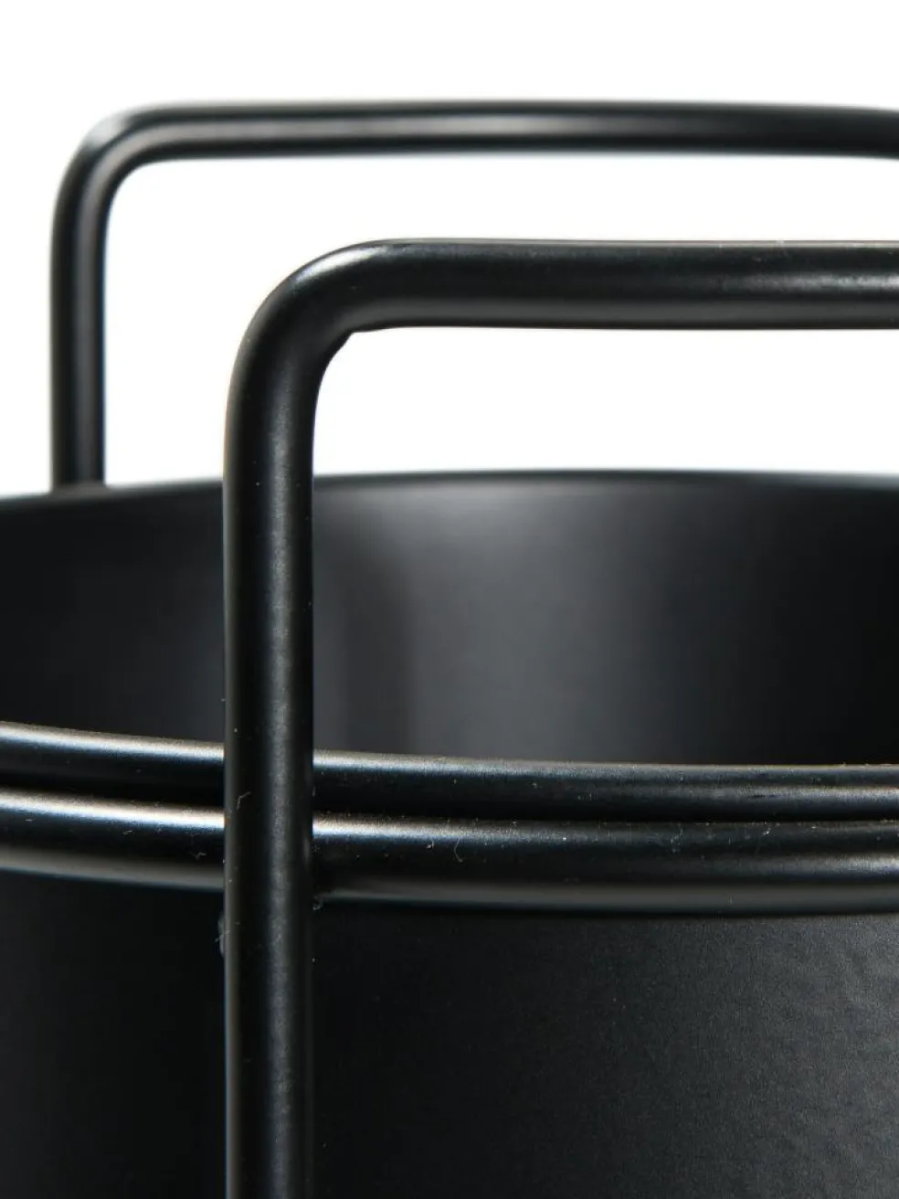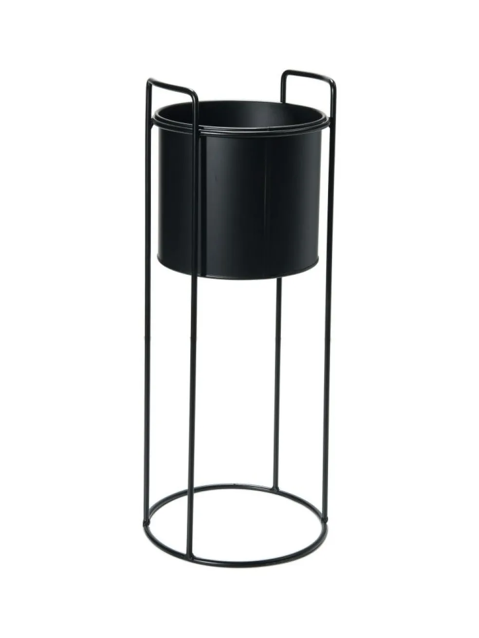 Zum Wohntrend Modern Black hervorragend passender Pflanztopf mit Platz für eine Pflanze. Rund. Aus Metall gefertigt. Matt schwarz.