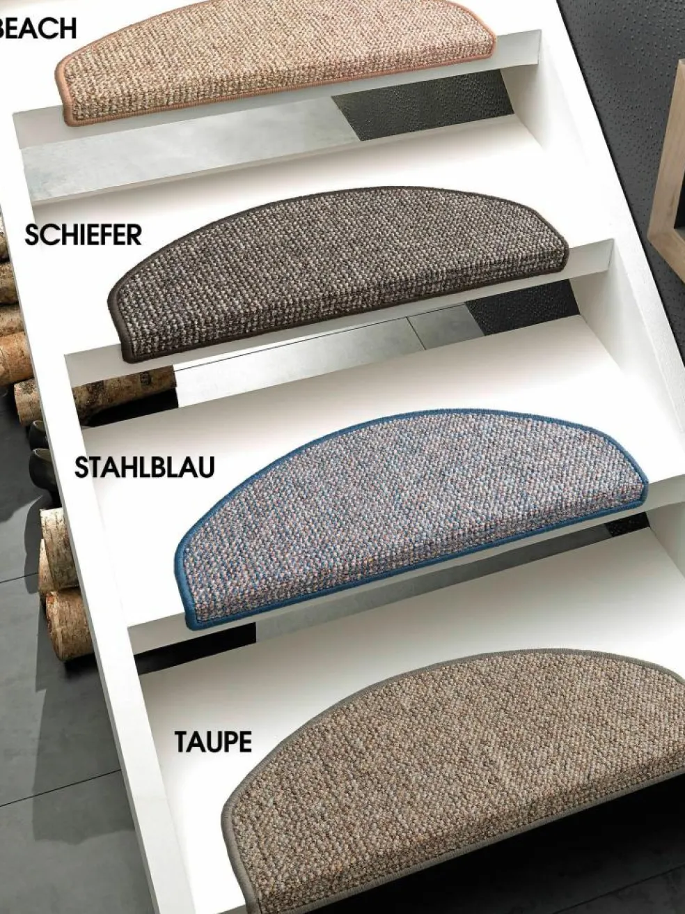 Edler Auftritt: Die HIGHLAND- Stufenmatten machen das Treppensteigen angenehmer. Denn der kompakte Flor aus 100 % Polypropylen ist schön griffig und die neutralen Töne mit ihrem dezenten Punktmuster lassen sich bestens mit unterschiedlichen Materialien kombinieren. Ein eingesetzter Winkel macht die Montage denkbar einfach: Schutzfolie abziehen, Winkel aufsetzen, festdrücken – fertig! Mattengröße ca. 23,5/65 cm. Stoßkante 4,5 cm.