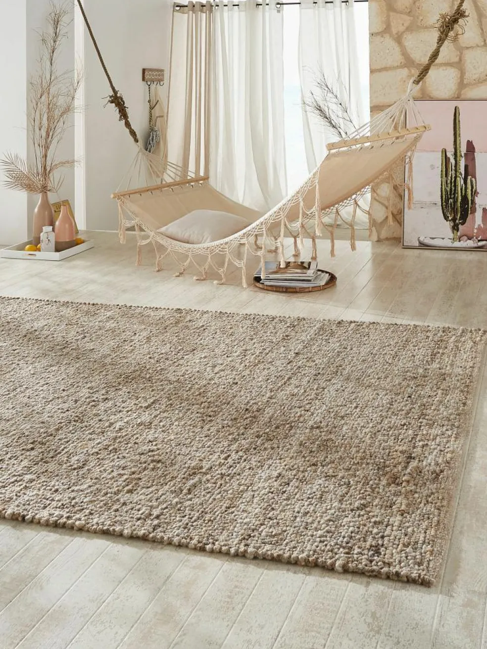 des handgewebten HILLSAND ist hierfür die ideale Voraussetzung. Teppiche ausSchurwolle