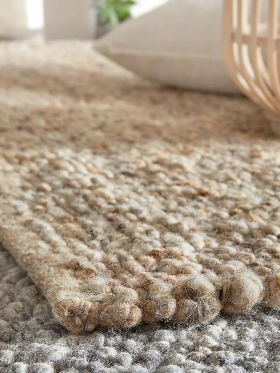 | Material: | 85 % Schurwolle , 10 % Jute, 5 % Polyester |