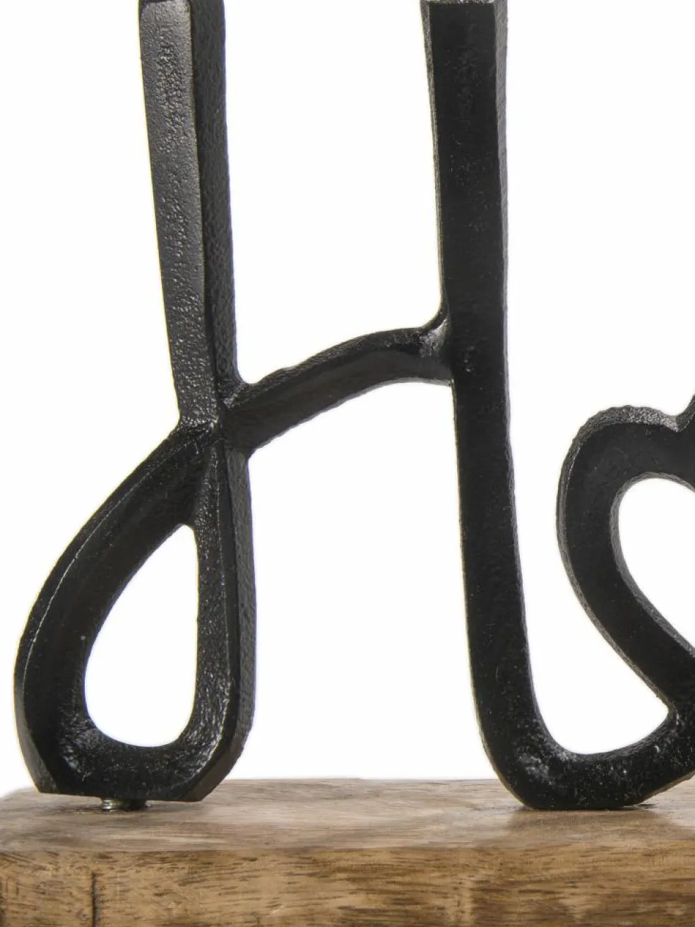 Dieser Aufsteller hält, was er verspricht: Der dekorative Schriftzug wurde aus hochwertigem Aluminium gefertigt und steht auf natürlichem Mangoholz – eine Kombination, die das Zuhause-Gefühl unterstützt.