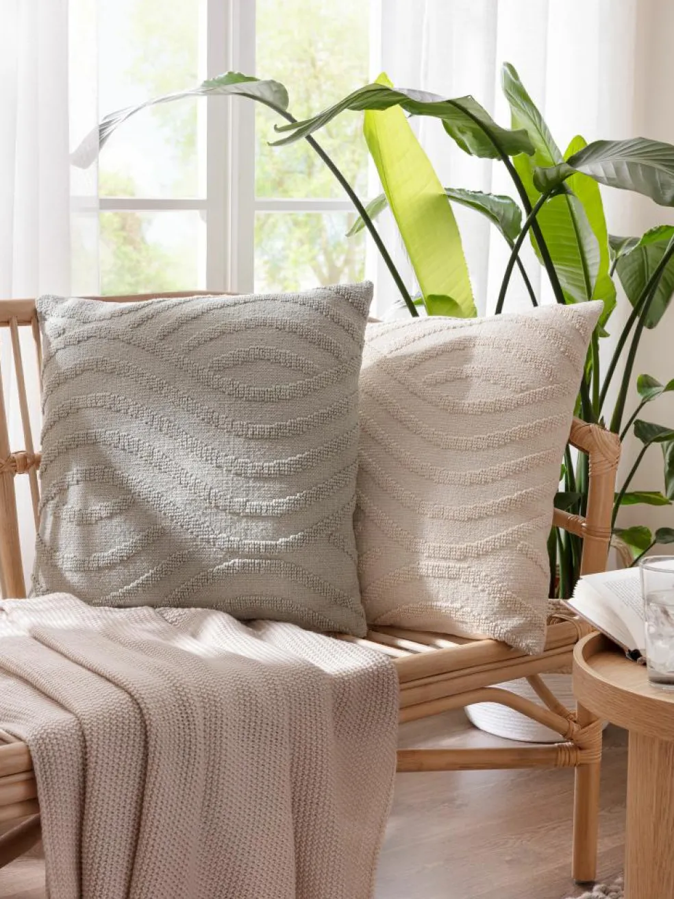 Die einzigartig getufteten Elemente machen dieses zeitlos klassische Kissen zu einem ganz besonderen Wohlfühlgegenstand. Egal ob Wohnbereich oder Schlafzimmer, sie verleihen jedem Raum Stil und Gemütlichkeit. Das haptisch spürbare Muster auf der Vorderseite lädt zum Kuscheln ein. Der Reissverschluss macht den Bezug dabei besonders praktisch. Die Füllung besteht dabei zu 100 % aus Polyester und der Bezug aus 100 % Baumwolle.