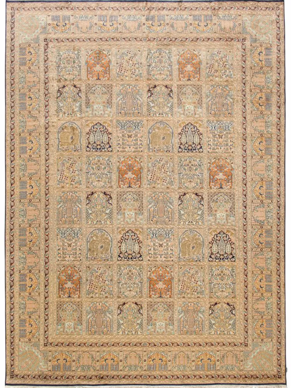 -Teppiche sind eher zurückhaltend, die Muster nach wie vor sehr stark persisch beeinflusst. Florale Motive und das persischeFeldermuster