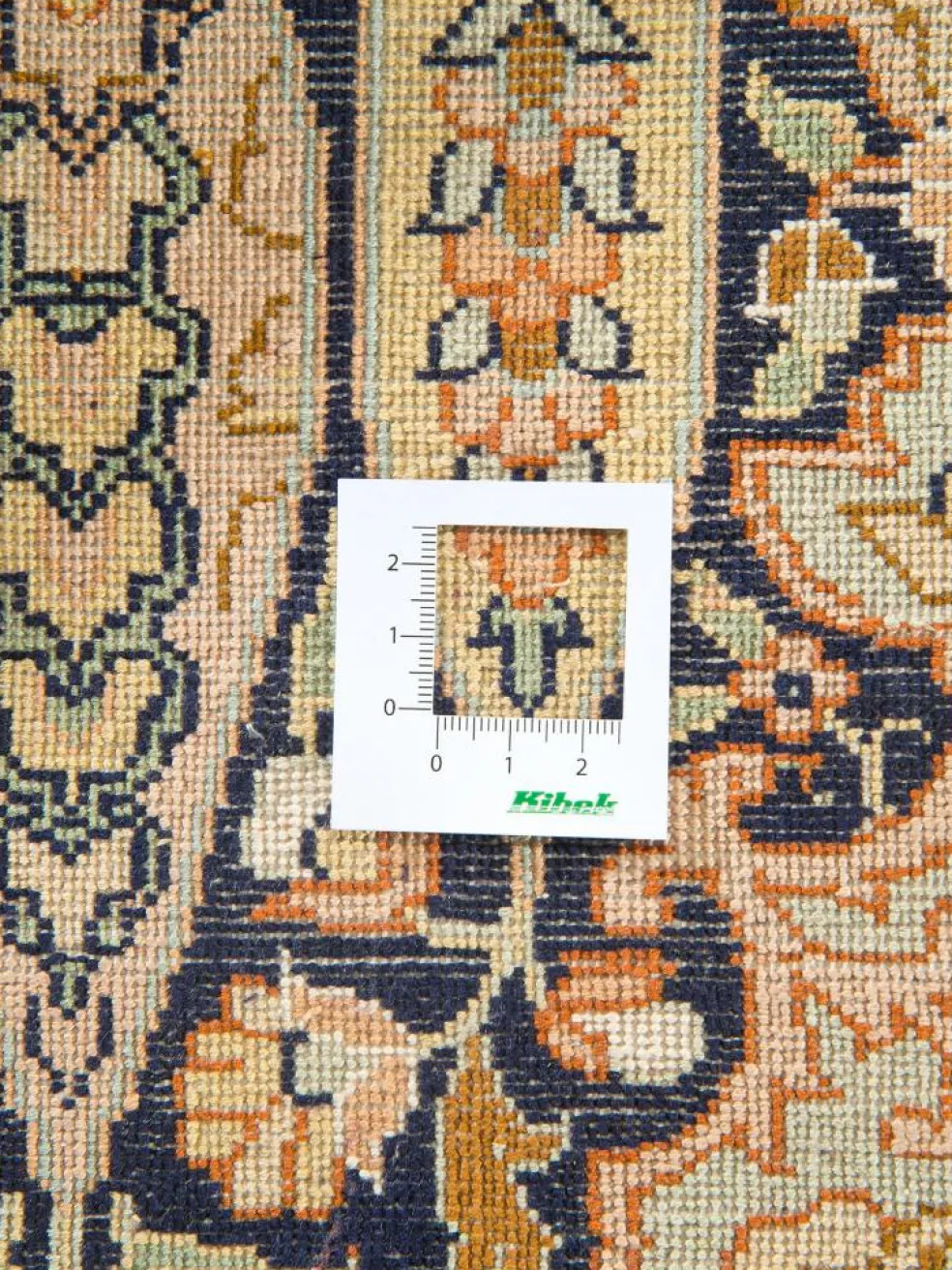 -Teppiche sind eher zurückhaltend, die Muster nach wie vor sehr stark persisch beeinflusst. Florale Motive und das persischeFeldermuster