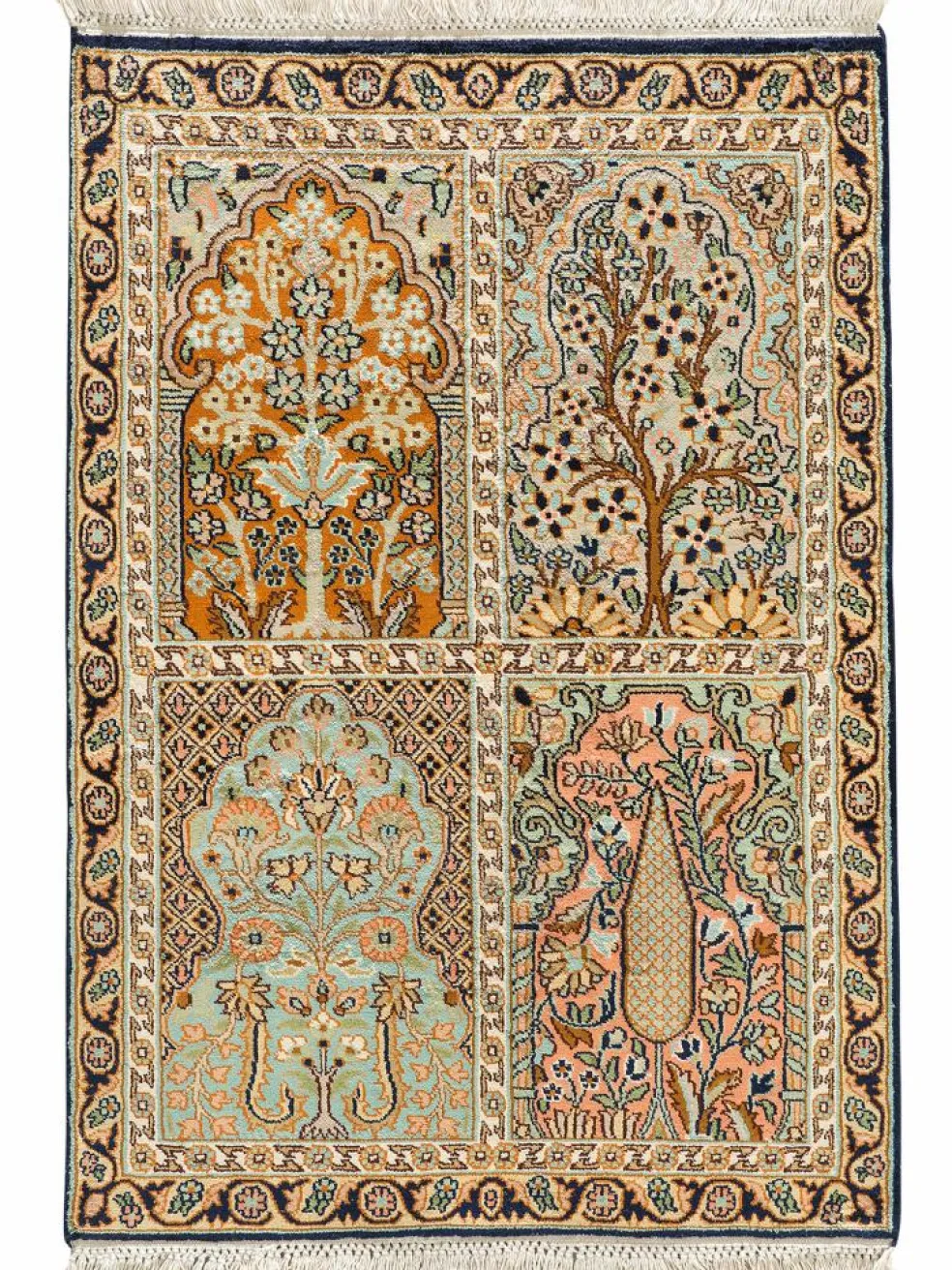 ist es berühmt für seine sehr feinen und hochwertigen Seidenteppiche. Die Farben derKaschmir