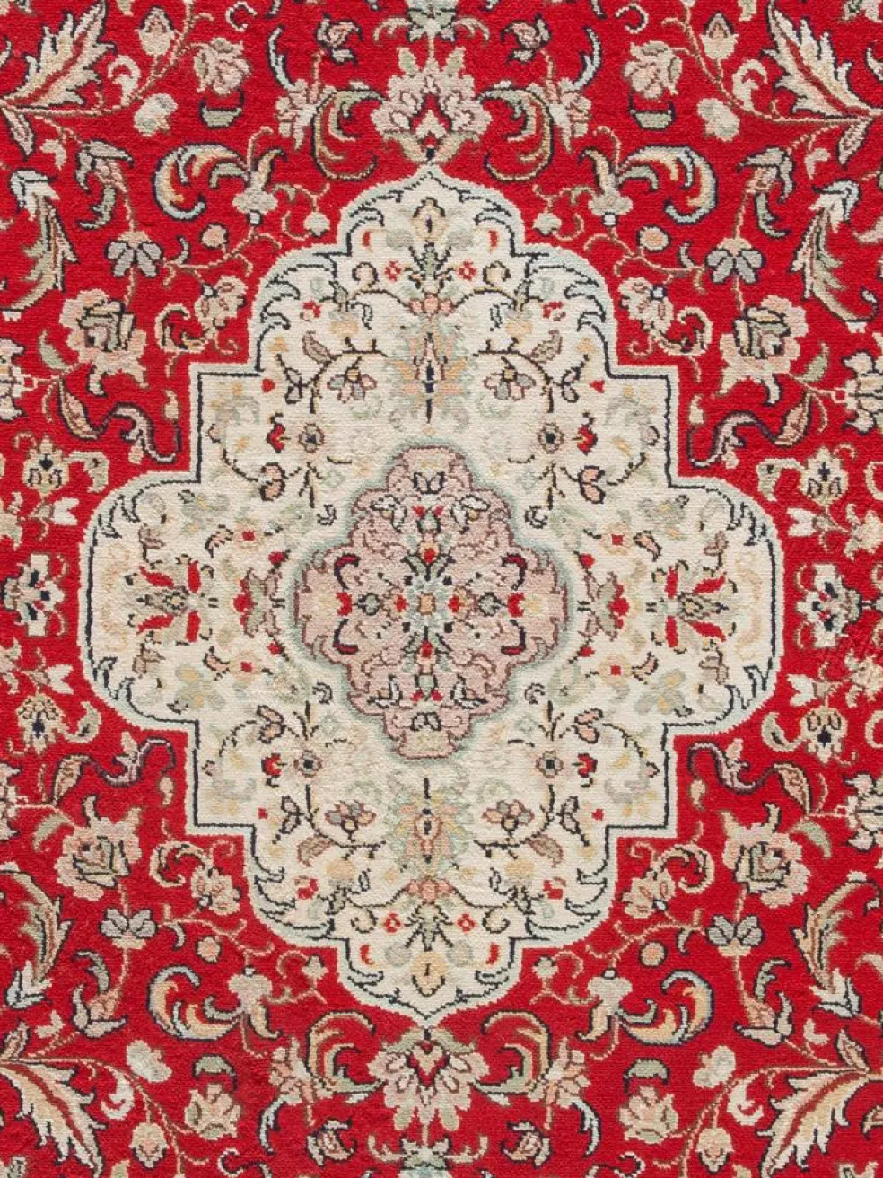 -Teppiche sind eher zurückhaltend, die Muster nach wie vor sehr stark persisch beeinflusst. Florale Motive und das persischeFeldermuster