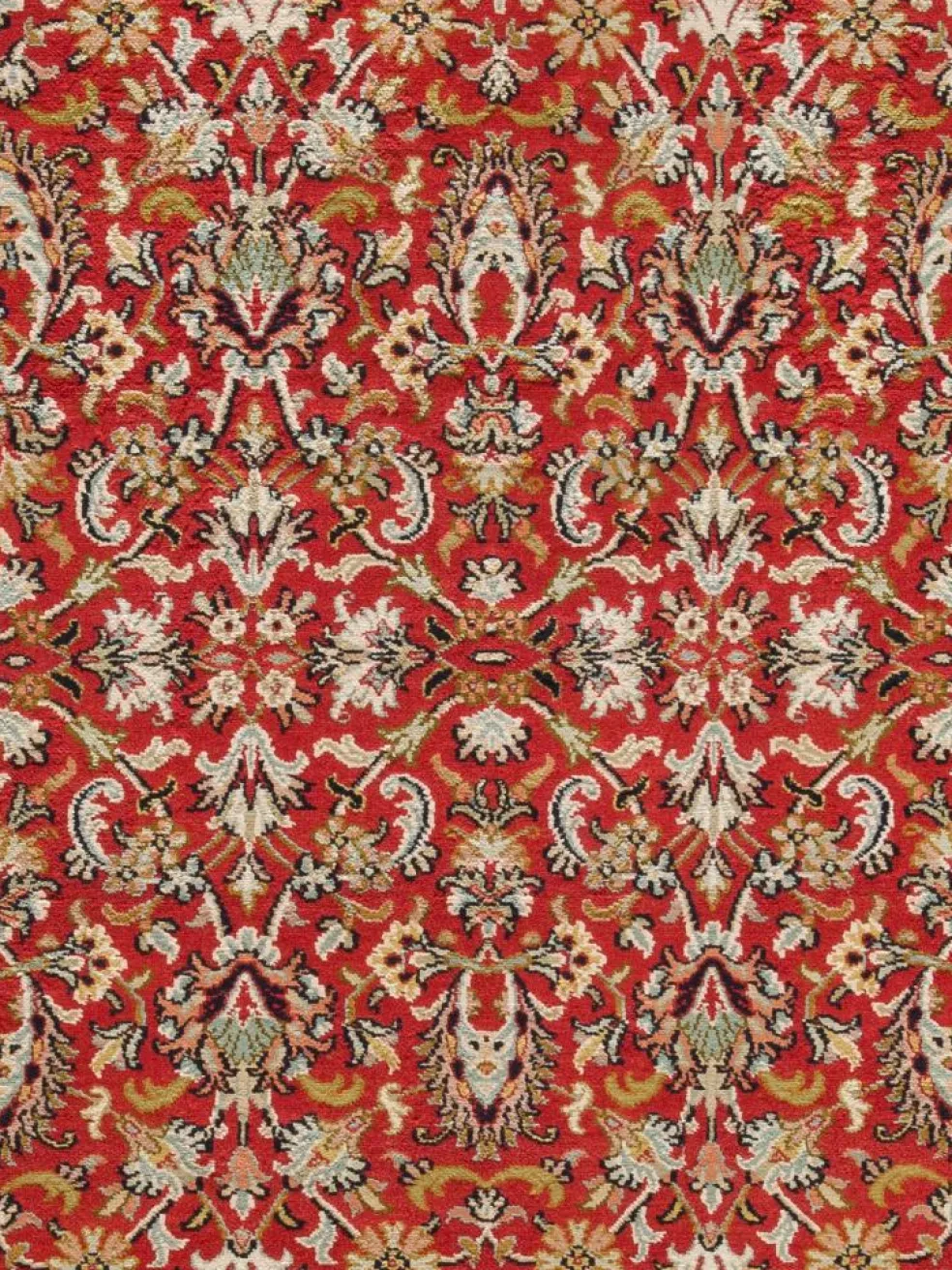 -Teppiche sind eher zurückhaltend, die Muster nach wie vor sehr stark persisch beeinflusst. Florale Motive und das persischeFeldermuster