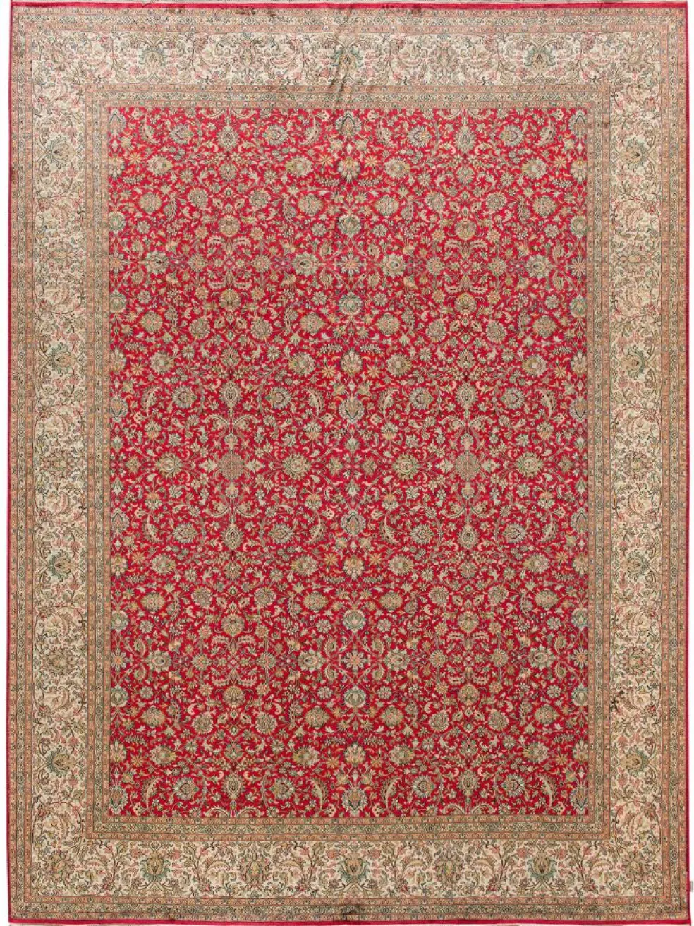-Teppiche sind eher zurückhaltend, die Muster nach wie vor sehr stark persisch beeinflusst. Florale Motive und das persischeFeldermuster