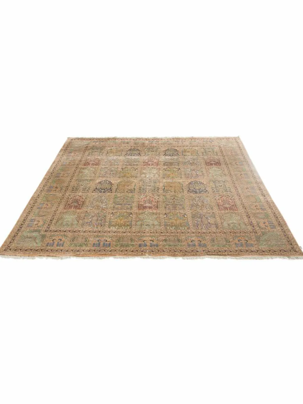 -Teppiche sind eher zurückhaltend, die Muster nach wie vor sehr stark persisch beeinflusst. Florale Motive und das persischeFeldermuster