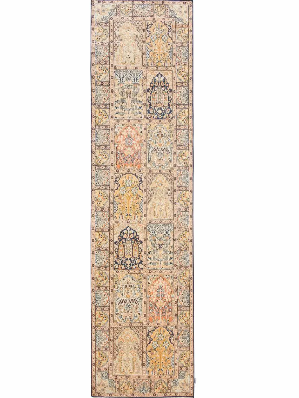 -Teppiche sind eher zurückhaltend, die Muster nach wie vor sehr stark persisch beeinflusst. Florale Motive und das persischeFeldermuster