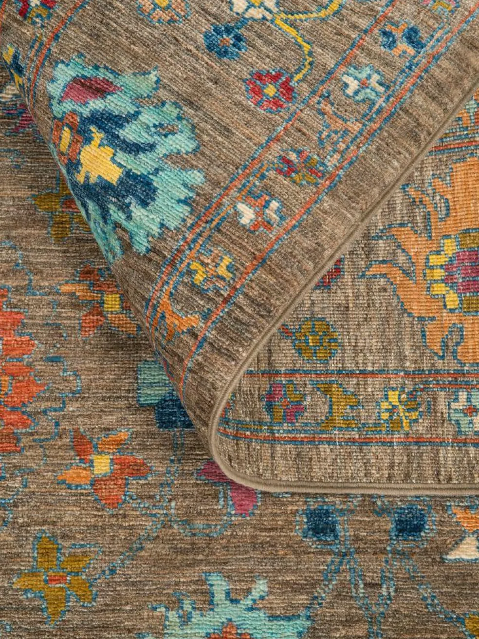 , einem klassischen Blütenmuster. Das Wort „Phool“ kommt aus der Pakistanischen Sprache Urdu und bedeutet „Blume“. Durch den flachen und festen Flor ist der Teppich unempfindlich gegenüber den Belastungen des Alltags. – Der Teppich wurde ausGhazni