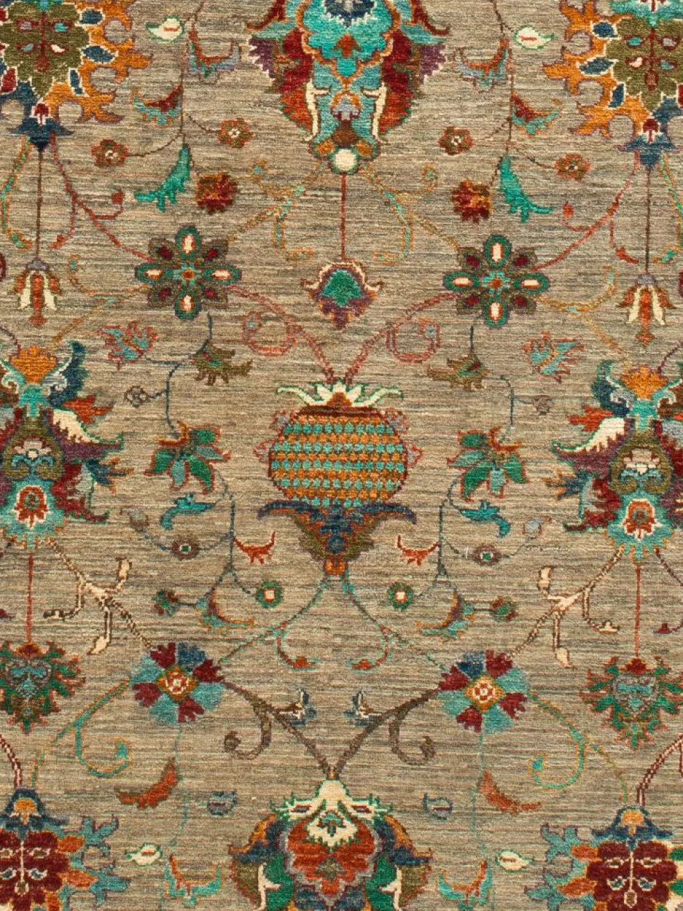 , einem klassischen Blütenmuster. Das Wort „Phool“ kommt aus der Pakistanischen Sprache Urdu und bedeutet „Blume“. Durch den flachen und festen Flor ist der Teppich unempfindlich gegenüber den Belastungen des Alltags. – Der Teppich wurde ausGhazni