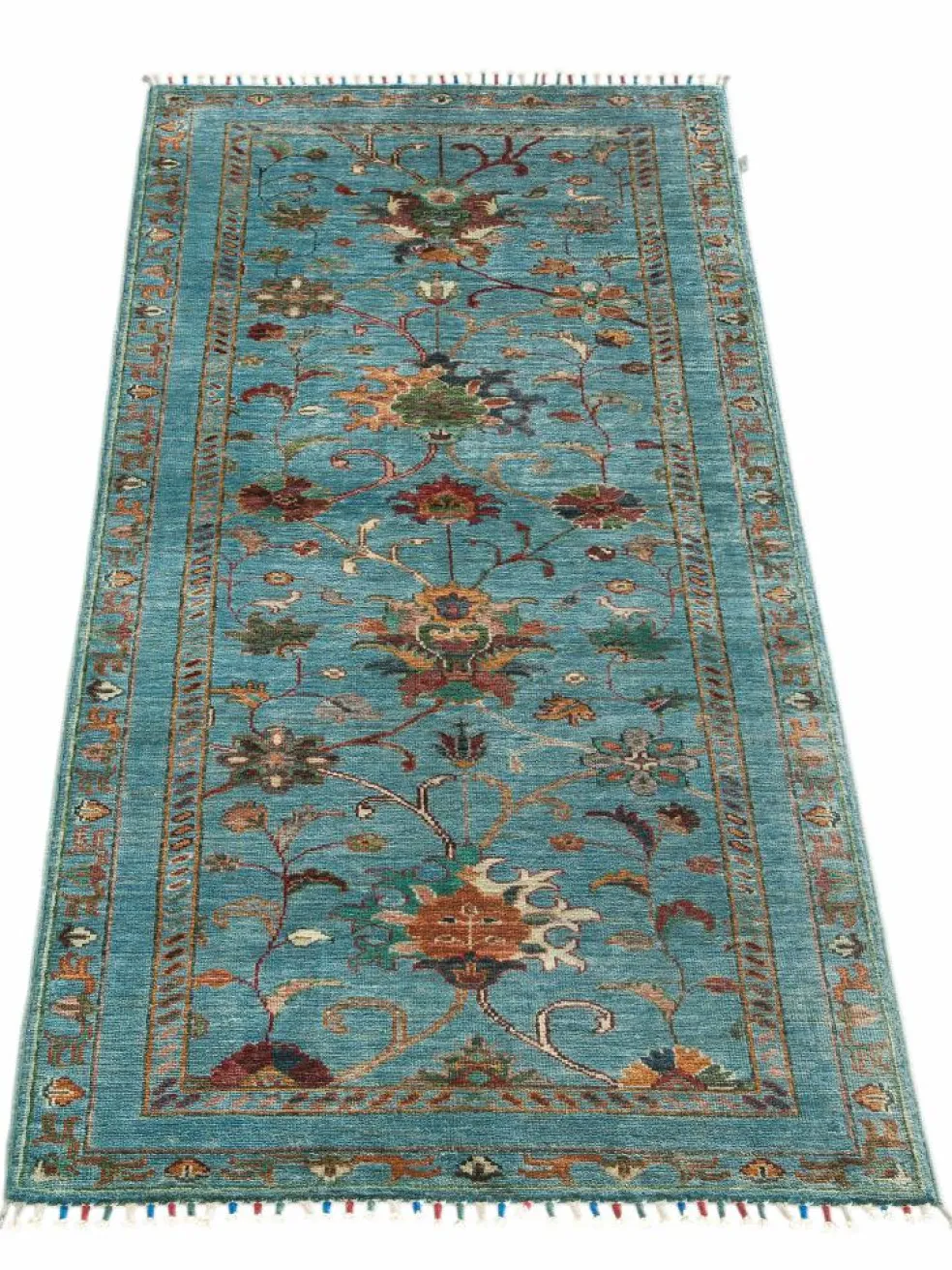 , einem klassischen Blütenmuster. Das Wort „Phool“ kommt aus der Pakistanischen Sprache Urdu und bedeutet „Blume“. Durch den flachen und festen Flor ist der Teppich unempfindlich gegenüber den Belastungen des Alltags. – Der Teppich wurde ausGhazni