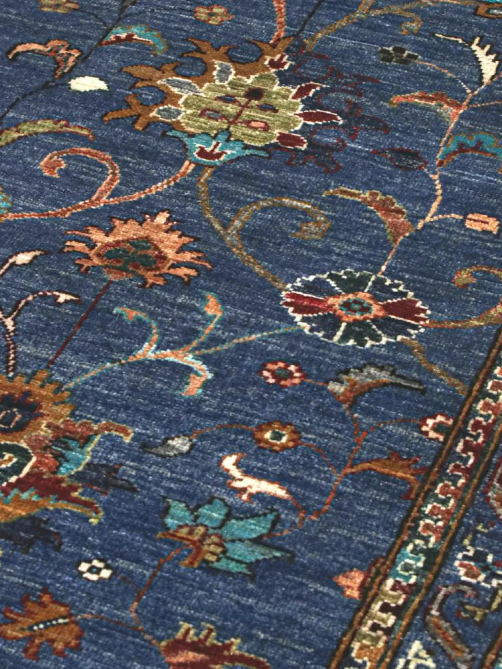 , einem klassischen Blütenmuster. Das Wort „Phool“ kommt aus der Pakistanischen Sprache Urdu und bedeutet „Blume“. Durch den flachen und festen Flor ist der Teppich unempfindlich gegenüber den Belastungen des Alltags. – Der Teppich wurde ausGhazni
