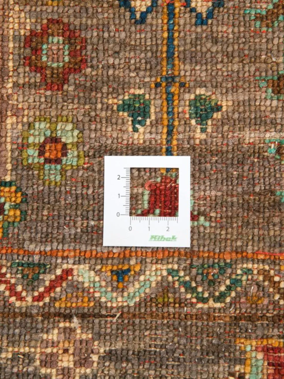 , einem klassischen Blütenmuster. Das Wort „Phool“ kommt aus der Pakistanischen Sprache Urdu und bedeutet „Blume“. Durch den flachen und festen Flor ist der Teppich unempfindlich gegenüber den Belastungen des Alltags. – Der Teppich wurde ausGhazni