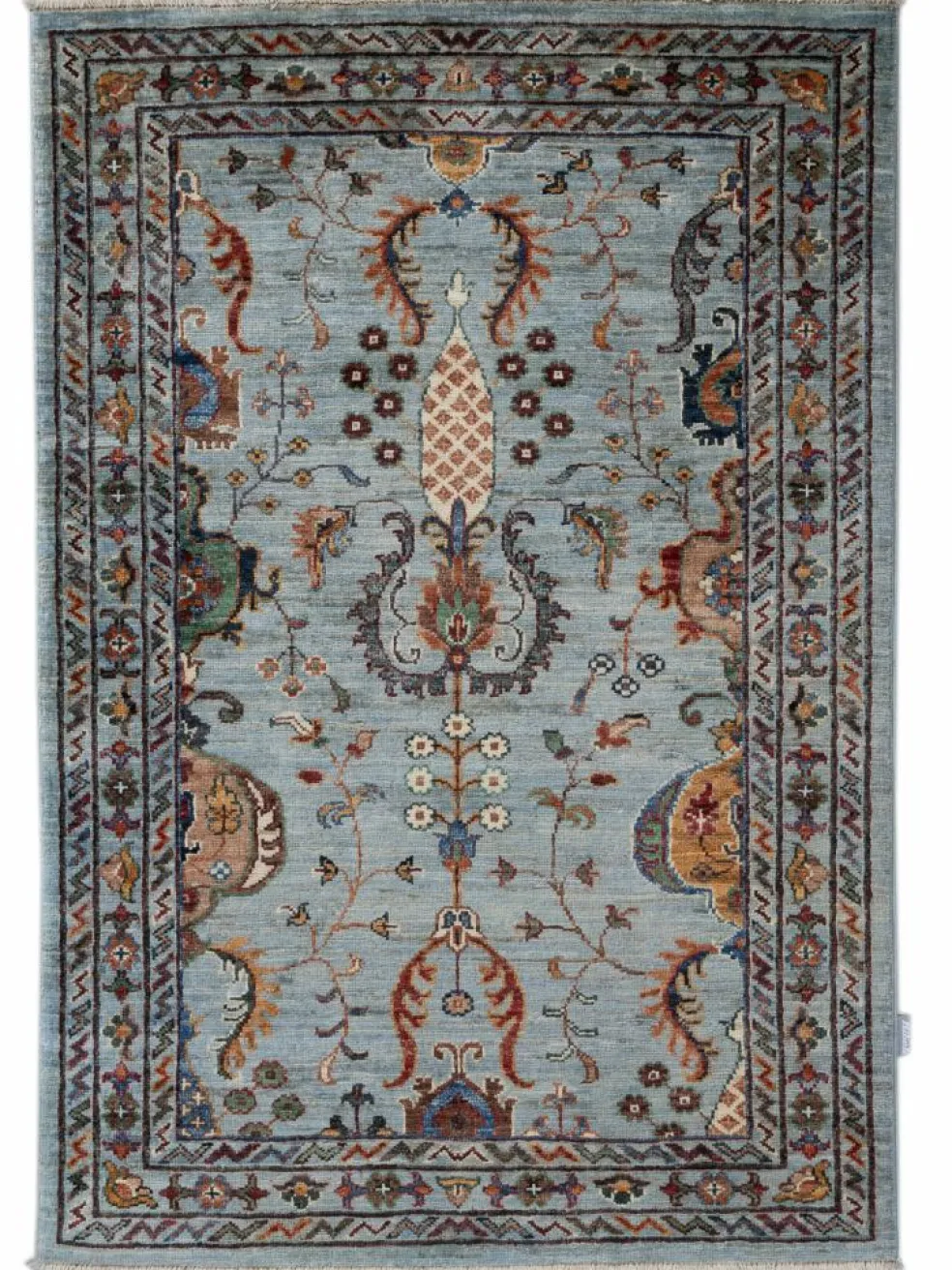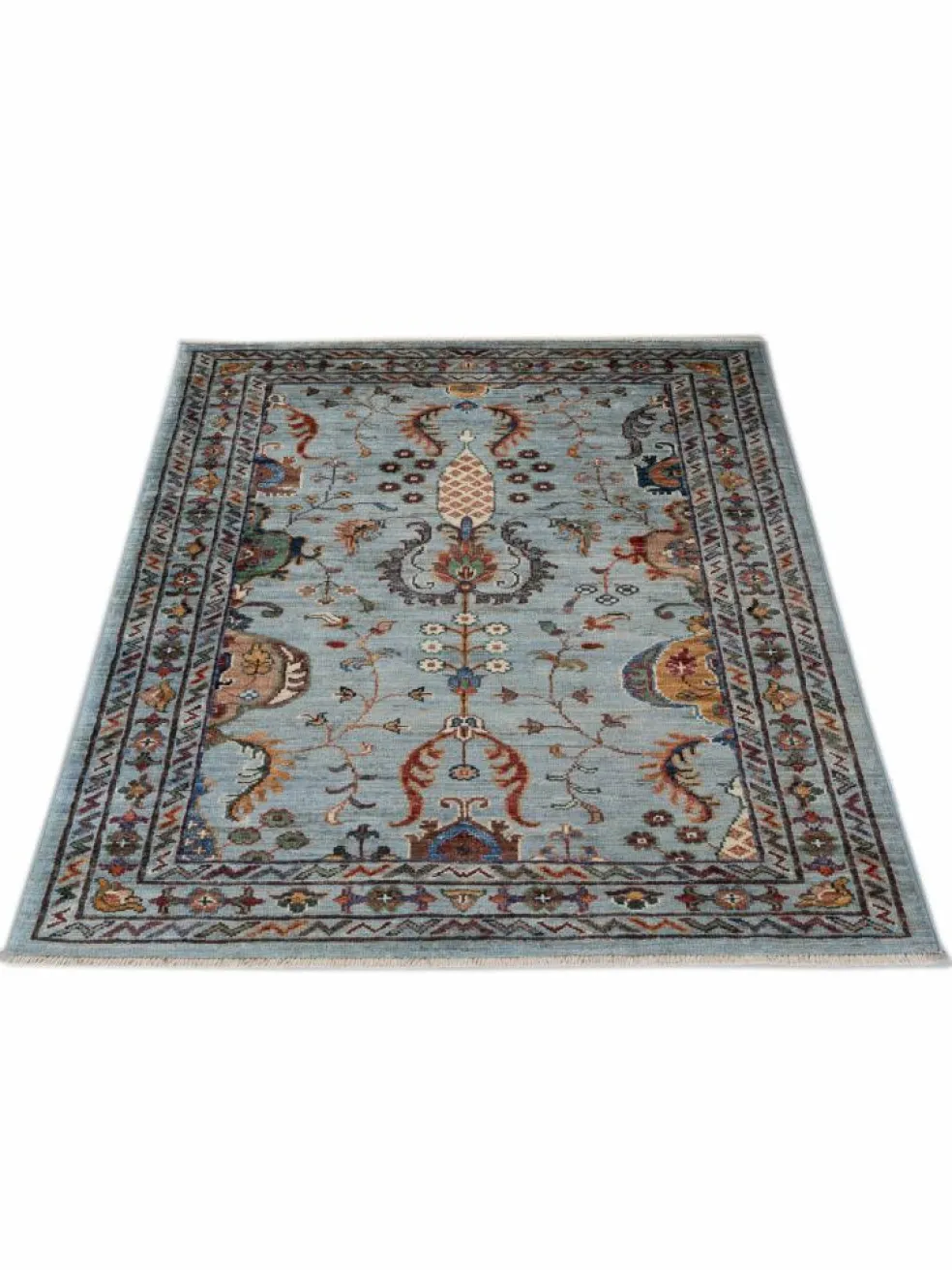 , einem klassischen Blütenmuster. Das Wort „Phool“ kommt aus der Pakistanischen Sprache Urdu und bedeutet „Blume“. Durch den flachen und festen Flor ist der Teppich unempfindlich gegenüber den Belastungen des Alltags. – Der Teppich wurde ausGhazni