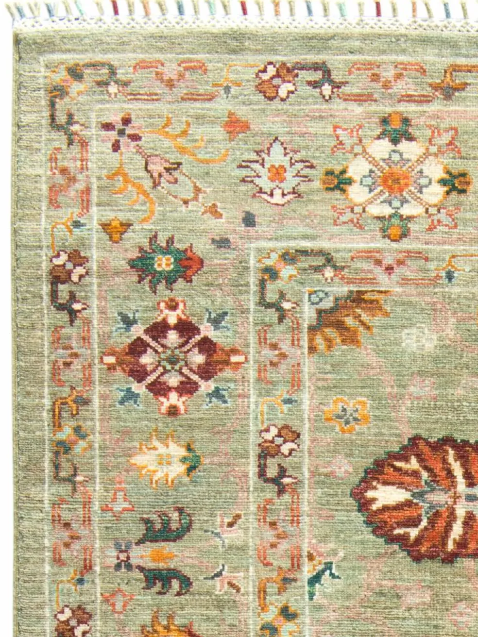 , einem klassischen Blütenmuster. Das Wort „Phool“ kommt aus der Pakistanischen Sprache Urdu und bedeutet „Blume“. Durch den flachen und festen Flor ist der Teppich unempfindlich gegenüber den Belastungen des Alltags. – Der Teppich wurde ausGhazni