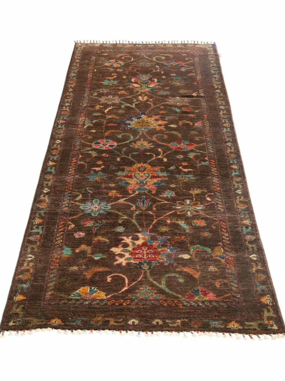 , einem klassischen Blütenmuster. Das Wort „Phool“ kommt aus der Pakistanischen Sprache Urdu und bedeutet „Blume“. Durch den flachen und festen Flor ist der Teppich unempfindlich gegenüber den Belastungen des Alltags. – Der Teppich wurde ausGhazni