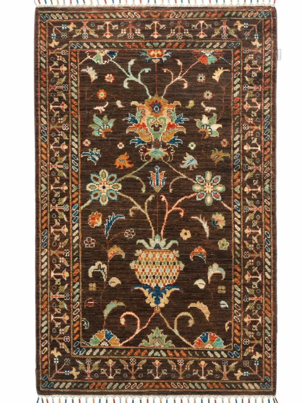 , einem klassischen Blütenmuster. Das Wort „Phool“ kommt aus der Pakistanischen Sprache Urdu und bedeutet „Blume“. Durch den flachen und festen Flor ist der Teppich unempfindlich gegenüber den Belastungen des Alltags. – Der Teppich wurde ausGhazni