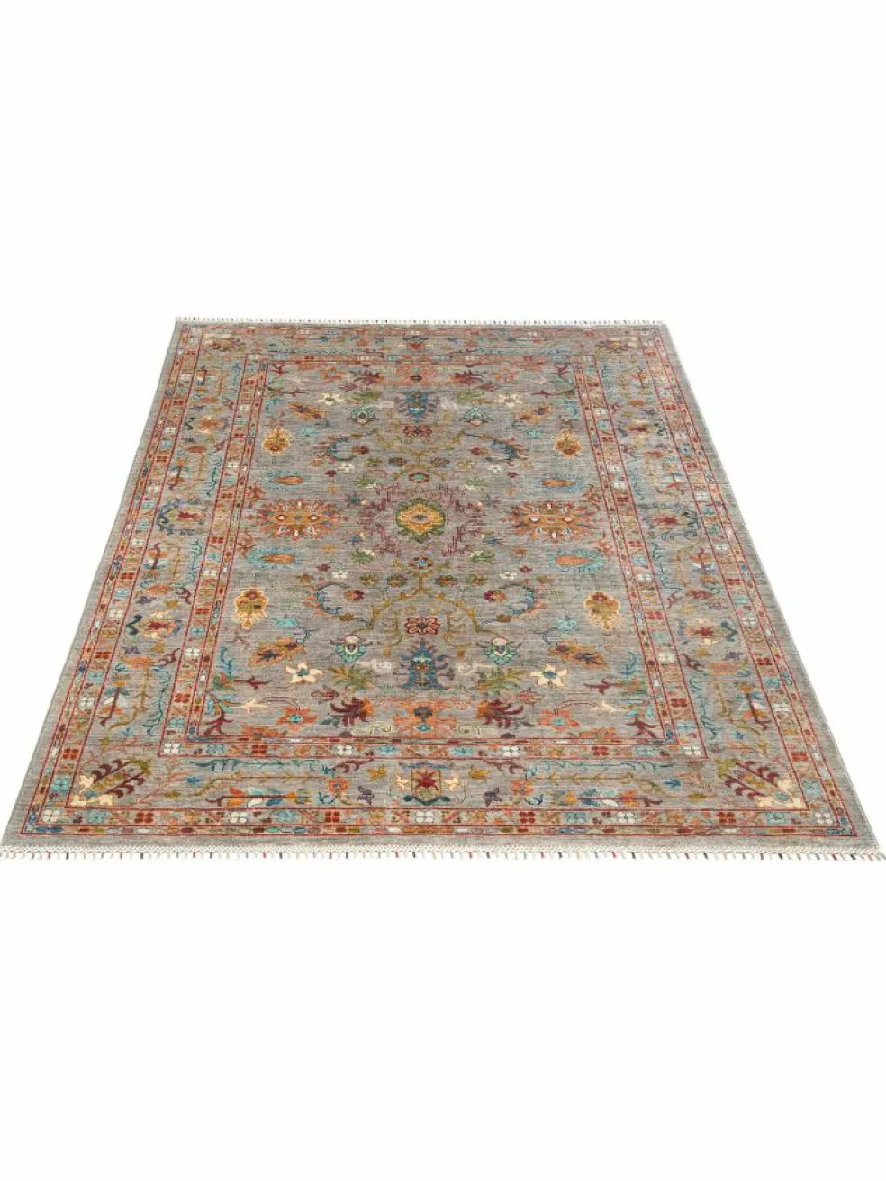 , einem klassischen Blütenmuster. Das Wort „Phool“ kommt aus der Pakistanischen Sprache Urdu und bedeutet „Blume“. Durch den flachen und festen Flor ist der Teppich unempfindlich gegenüber den Belastungen des Alltags. – Der Teppich wurde ausGhazni