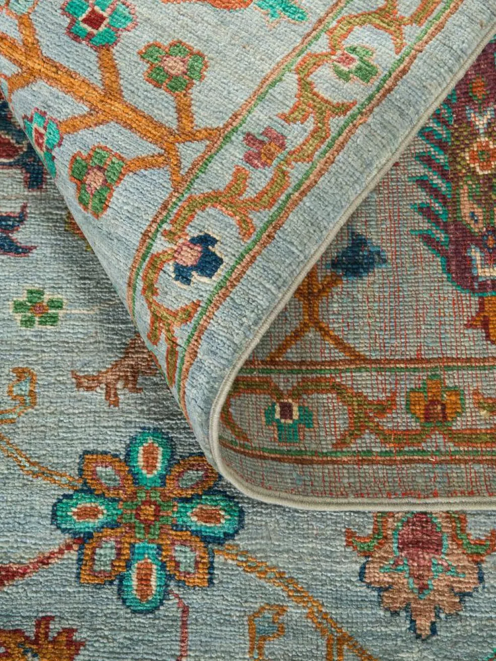 , einem klassischen Blütenmuster. Das Wort „Phool“ kommt aus der Pakistanischen Sprache Urdu und bedeutet „Blume“. Durch den flachen und festen Flor ist der Teppich unempfindlich gegenüber den Belastungen des Alltags. – Der Teppich wurde ausGhazni