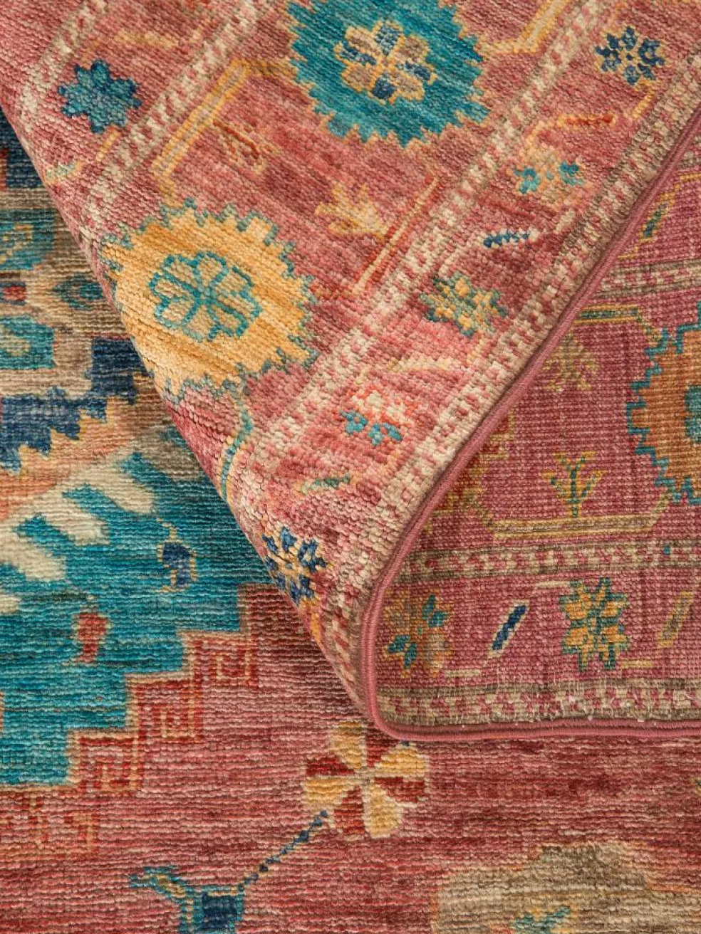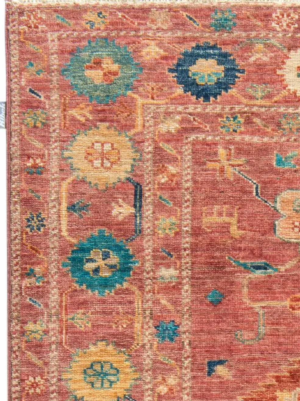 , einem klassischen Blütenmuster. Das Wort „Phool“ kommt aus der Pakistanischen Sprache Urdu und bedeutet „Blume“. Durch den flachen und festen Flor ist der Teppich unempfindlich gegenüber den Belastungen des Alltags. – Der Teppich wurde ausGhazni