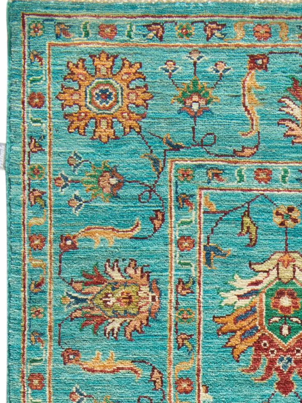, einem klassischen Blütenmuster. Das Wort „Phool“ kommt aus der Pakistanischen Sprache Urdu und bedeutet „“Blume““. Durch den flachen und festen Flor ist der Teppich unempfindlich gegenüber den Belastungen des Alltags. – Der Teppich wurde ausGhazni