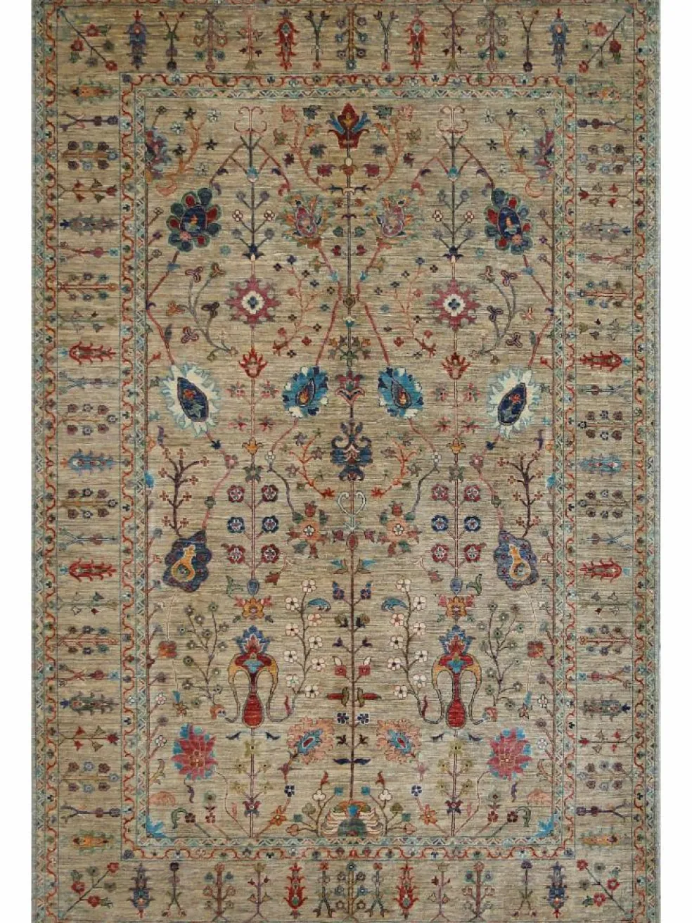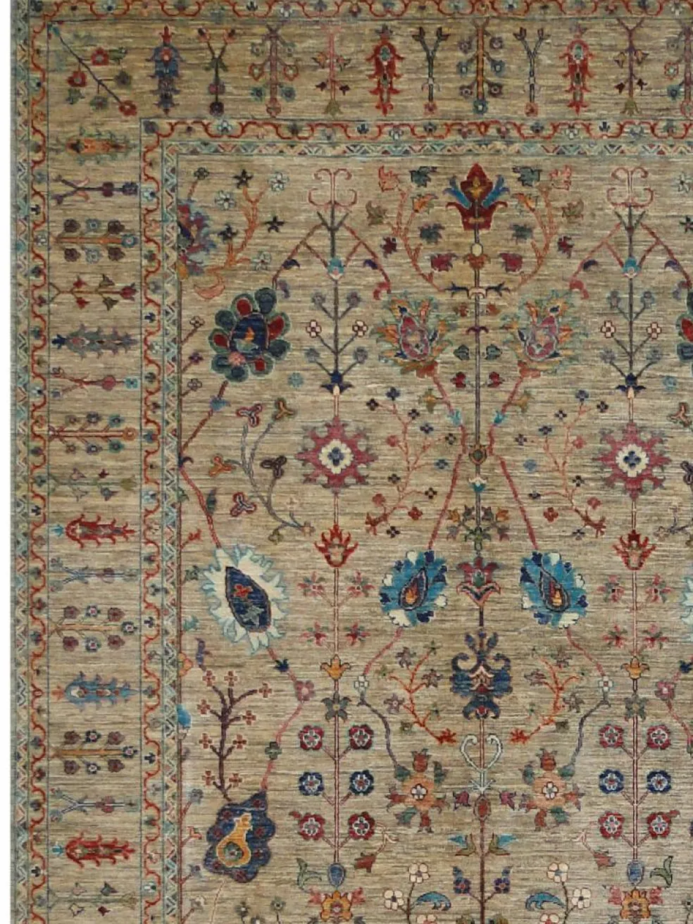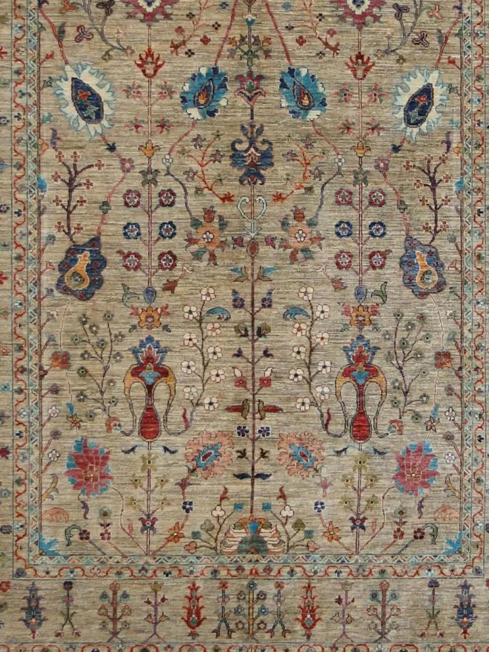, einem klassischen Blütenmuster. Das Wort „Phool“ kommt aus der Pakistanischen Sprache Urdu und bedeutet „“Blume““. Durch den flachen und festen Flor ist der Teppich unempfindlich gegenüber den Belastungen des Alltags. – Der Teppich wurde ausGhazni