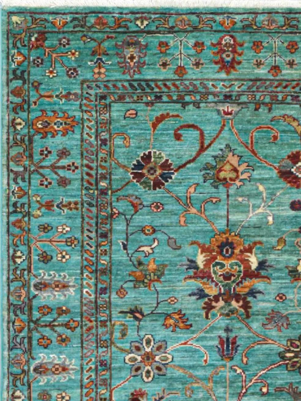 , einem klassischen Blütenmuster. Das Wort „Phool“ kommt aus der Pakistanischen Sprache Urdu und bedeutet „Blume“. Durch den flachen und festen Flor ist der Teppich unempfindlich gegenüber den Belastungen des Alltags. – Der Teppich wurde ausGhazni