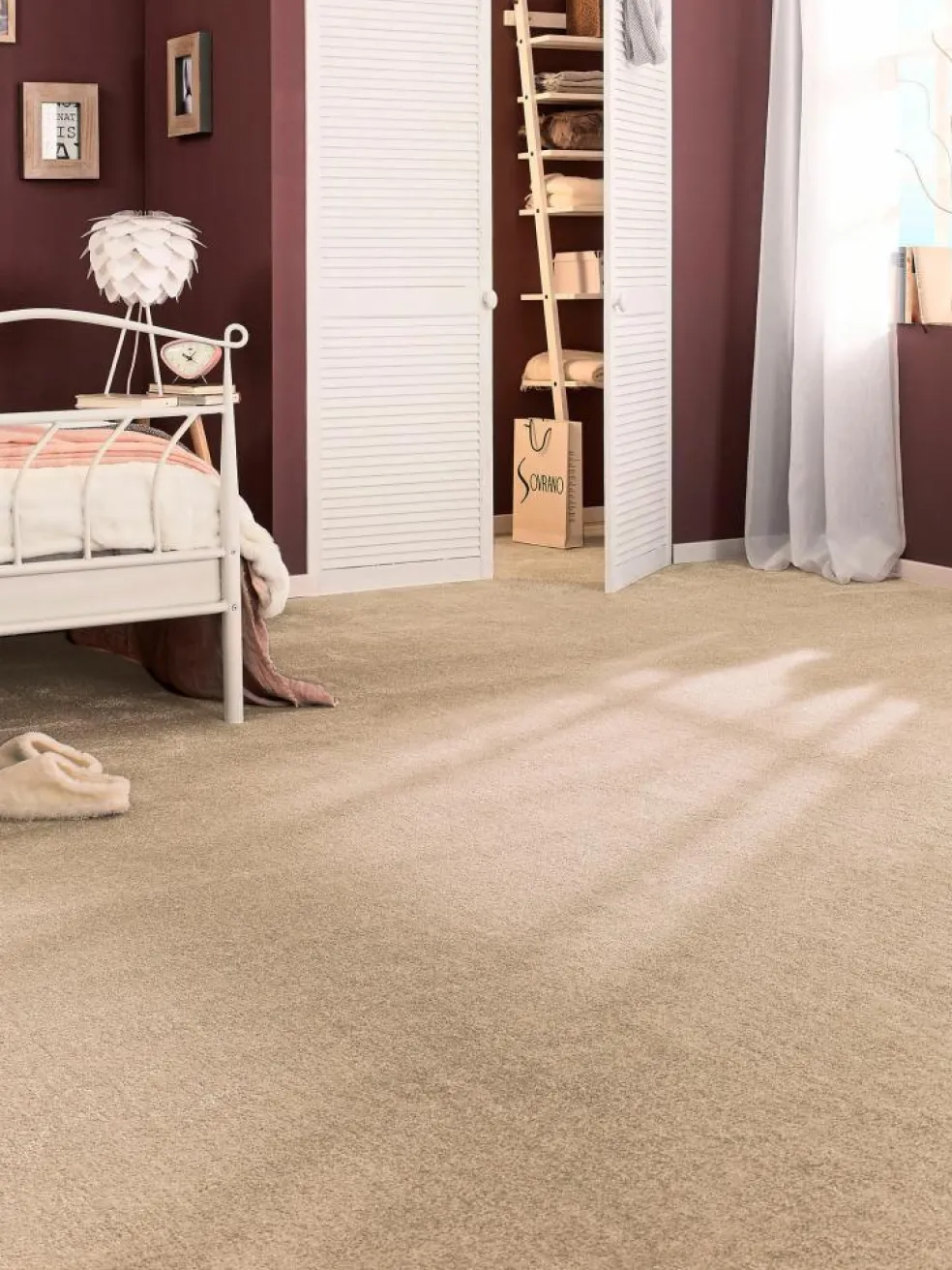 Äußerst hautsympathischer, feiner Kräuselvelours-Teppichboden. Besonders pflegeleicht, langlebig und strapazierfähig.