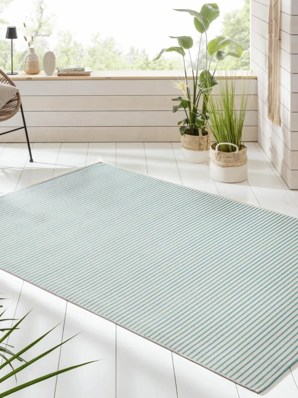 Mit den sommerlichen Farben und dem modernen Streifen-Muster bringt Lanikai den Frühling und Sommer in jeden Outdoor-Bereich. Das farbenfrohe Design ist ein absoluter Hingucker und macht sich besonders gut in Kombination mit unserer Outdoor-Leuchte Kitsilano und unseren neuen Outdoor-Kissen Franja. Hergestellt aus Polypropylen und Polyester ist Lanikai besonders strapazierfähig und pflegeleicht.