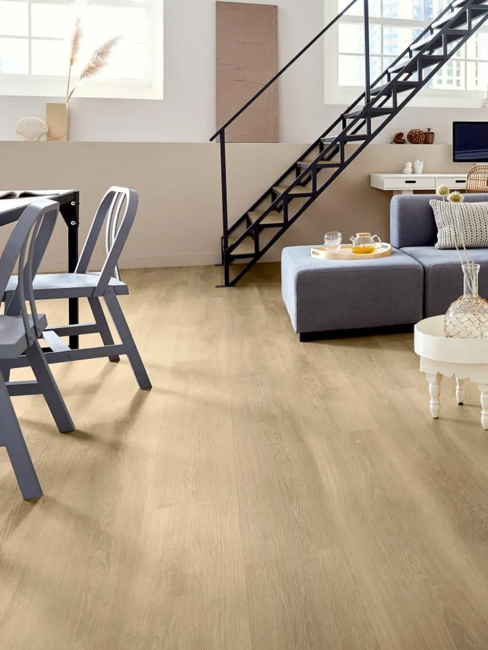 Der Levanger XL Vinylboden ist ein Produkt der Superlative. Die einzelnen Dielen sind mit den Maßen 23 x 150 cm extra lang und breit. Die besonders starke Nutzschicht von 0,55 mm macht den Bodenbelag nicht nur in Wohnräumen, sondern auch im Objektbereich mit starker Nutzung einsetzbar. Die warmen, naturgetreuen Holzdekore sind von Echtholz kaum zu unterscheiden. Die synchrone Oberflächenprägung macht die gezeigte Holzstruktur spürbar. Der Profi-VinylBodenbelag wurde für die vollflächige Verklebung entwickelt. Mit umlaufender V-Fuge. Phatalatfrei. Wir gewähren 30 Jahre Garantie.