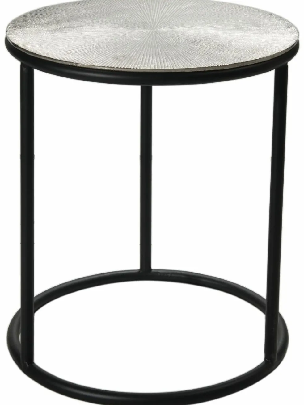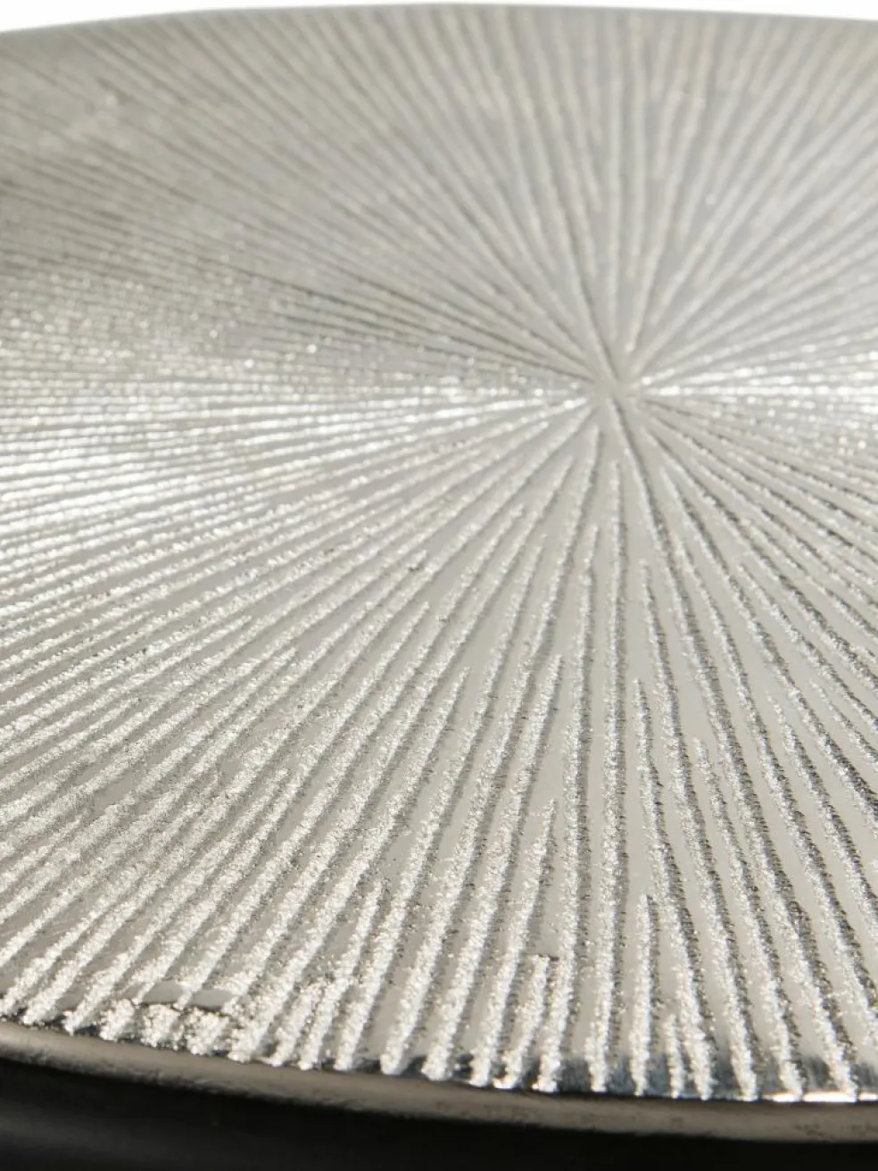 Dekorativer Eisentisch mit gerippter Aluminiumplatte.