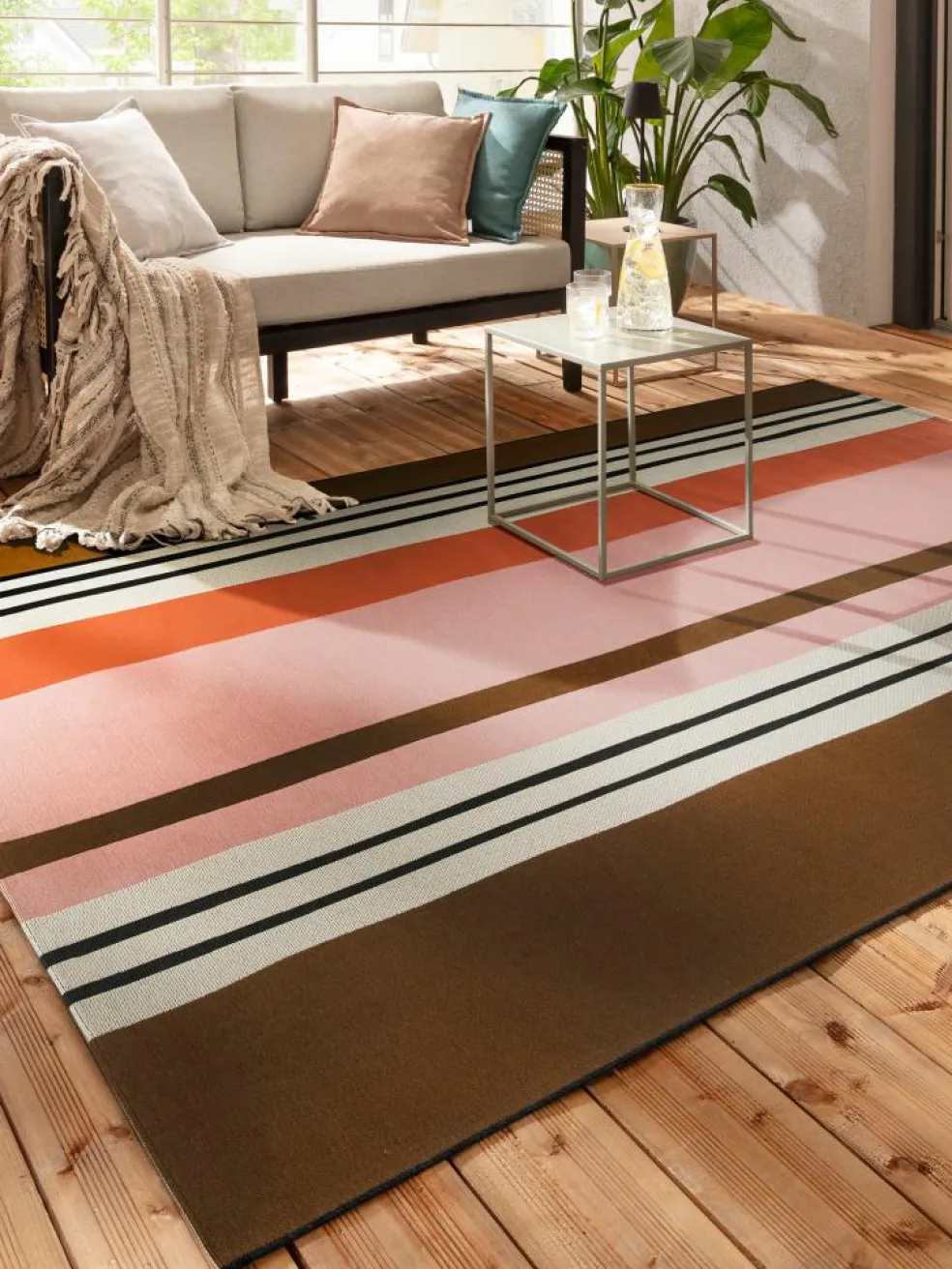Ein echtes Colour-Statement: Kräftige Farben in Streifen-Optik lassen jeden Outdoorbereich erstrahlen. Die verschiedenen Farb-Kombinationen machen es möglich, dass Lindos sich mit den unterschiedlichsten Einrichtungsstilen kombinieren lässt. Dabei ist Lindos besonders strapazierfähig und pflegeleicht – ideal für den Sommer auf Terrasse oder Balkon!