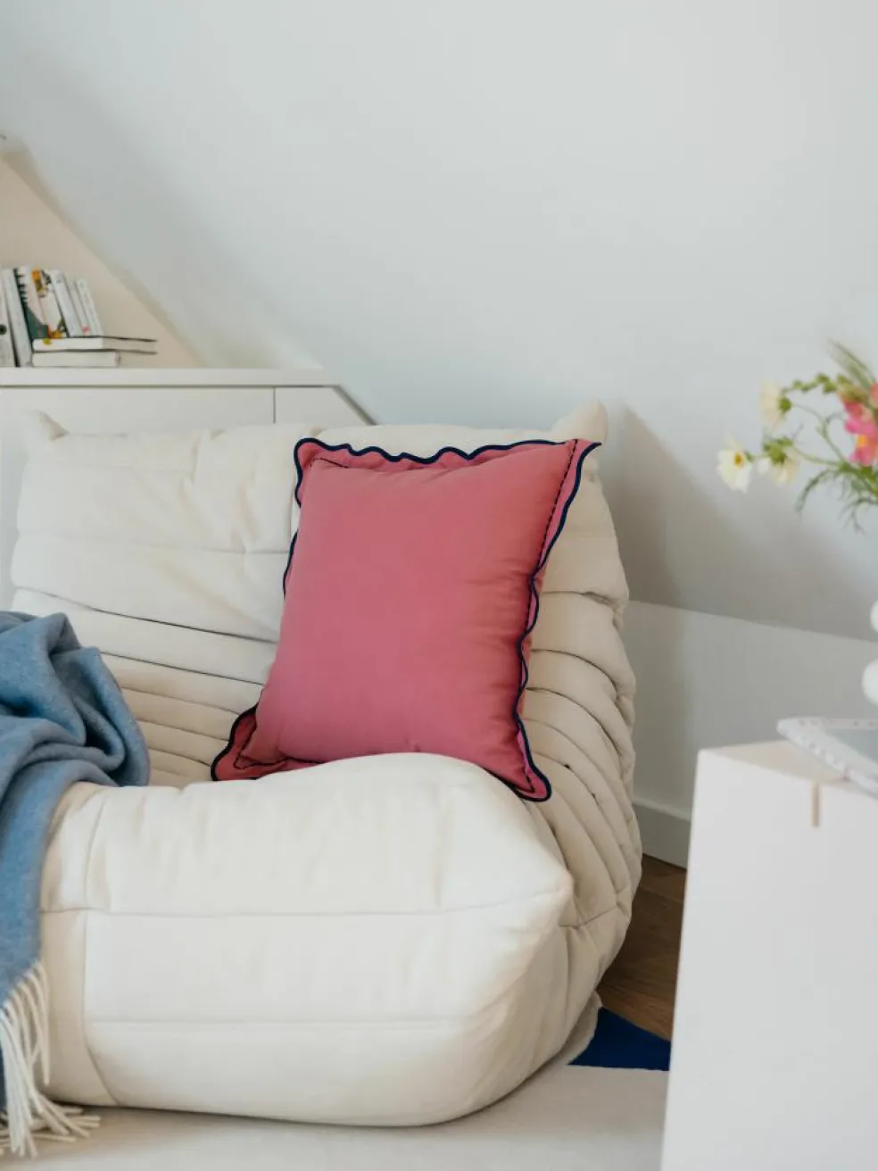 Das Luna Kissen in seinen vier Farbvarianten gehört zu der Kibek x Carmushka Kollektion und bringt Frühlingsgefühle in jedes Zuhause. Es besteht aus 100% hochwertiger Baumwolle (Kissenhülle) und ist so gefüllt, dass es gemütlich ist und trotzdem stabil platziert werden kann, je nachdem ob es als Zierkissen, oder kuscheliges Accessoire dienen soll. Das Luna Kissen lässt sich sowohl innerhalb der Farbvarianten kombinieren, kann aber auch einzeln als Eyecatcher dienen. Der schöne Wellenrand ist ein besonderes Detail des Kissens und macht es zu einem absoluten Trendprodukt in Form und Farbe. Ein weiteres Detail findet man am Rand, denn die farblich abgesetzte Paspelierung umspielt die Form auf besondere Weise, sodass sich hier ein spannender Kontrast finden lässt. Das Luna Kissen greift die Farben und Formen der restlichen Kollektion in Zusammenarbeit mit Trendsetterin Carmushka auf und ist ein Highlight für jedes Zuhause. Der versteckte Reißverschluss der Kissenhülle ermöglicht ein einfaches Entnehmen der Füllung, sodass Luna sich problemlos waschen lässt. Für einen langlebigen, wunderschönen Look.