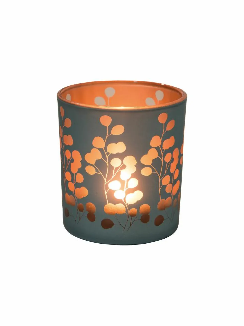 Lunaria schafft auf stilvolle Art und Weise ein wunderschönes Lichtspiel. Das Windlicht ist aus Glas gefertigt und ist von außen schlicht grau. Durch die goldene Beschichtung im Inneren und das fein gelaserte Blatt-Motiv bekommt Lunaria einen edlen Touch.
