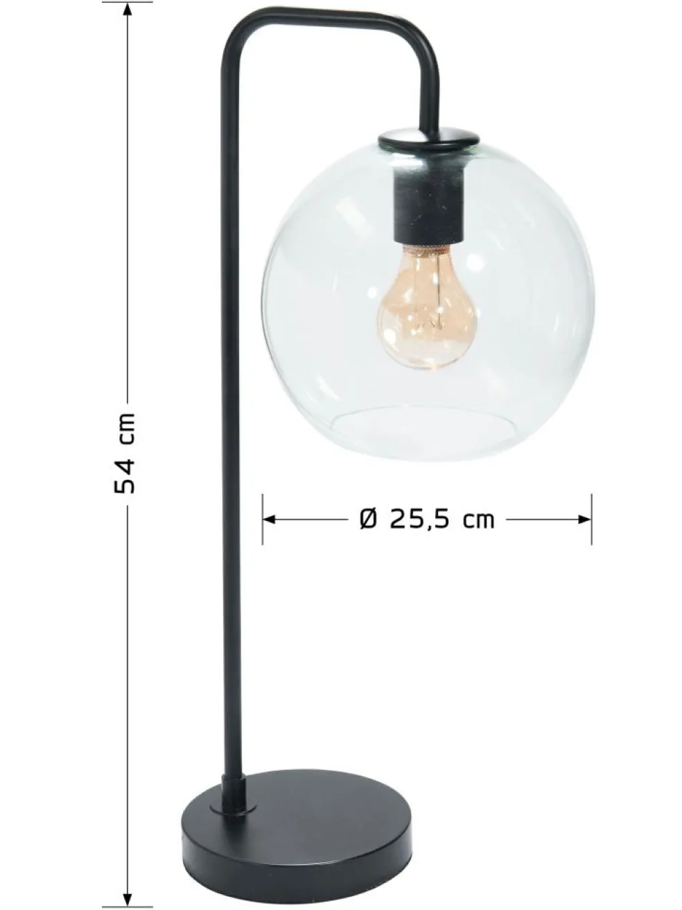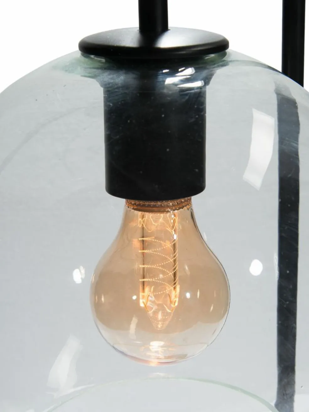 Gebürstetes Metall, schwarzmatt lackiert. Lampenschirm aus Glas. Exkl. Leuchtmittel E27, 40W.