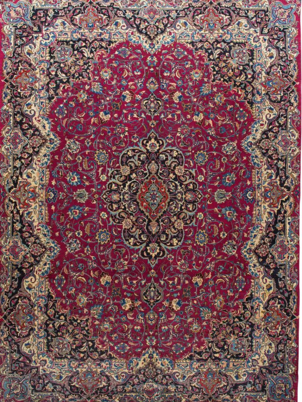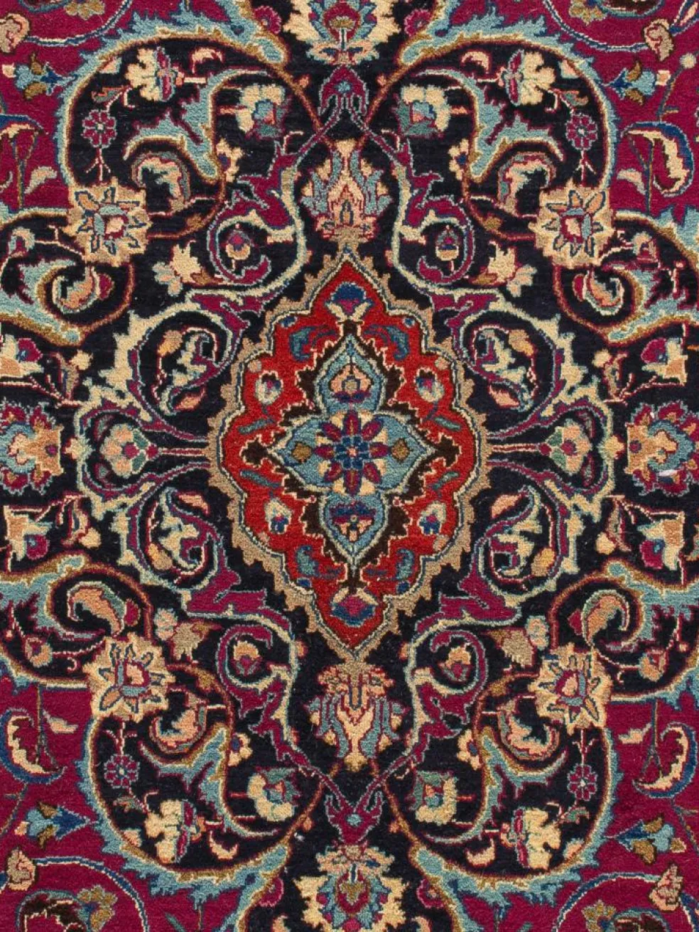 | Muster: | LexikonPalmetten Florales Musterdetail – es zeigt eine Blüte im Querschnitt ZUM LEXIKON Palmetten ,LexikonGabelranken Beliebtes florales Teppichornament pflanzlicher Herkunft ZUM LEXIKON Gabelranken ,LexikonMedaillon Primärornament im Mittelfeld des Teppichs ZUM LEXIKON Medaillon |
