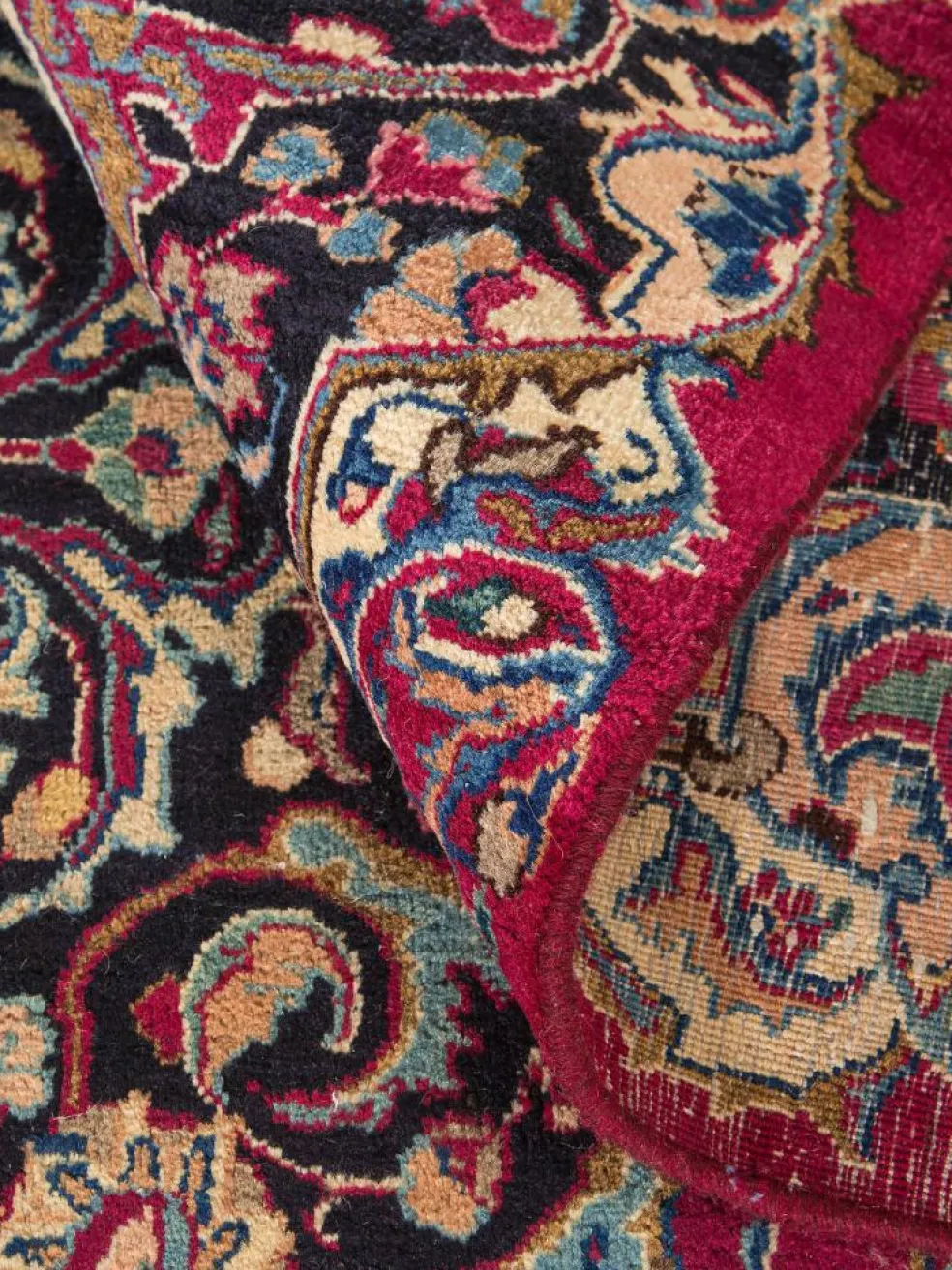 Spiralartiges Detail ornamentaler Musterführung – Arabesken sind ein typisches Muster für hochwertige persische Teppiche