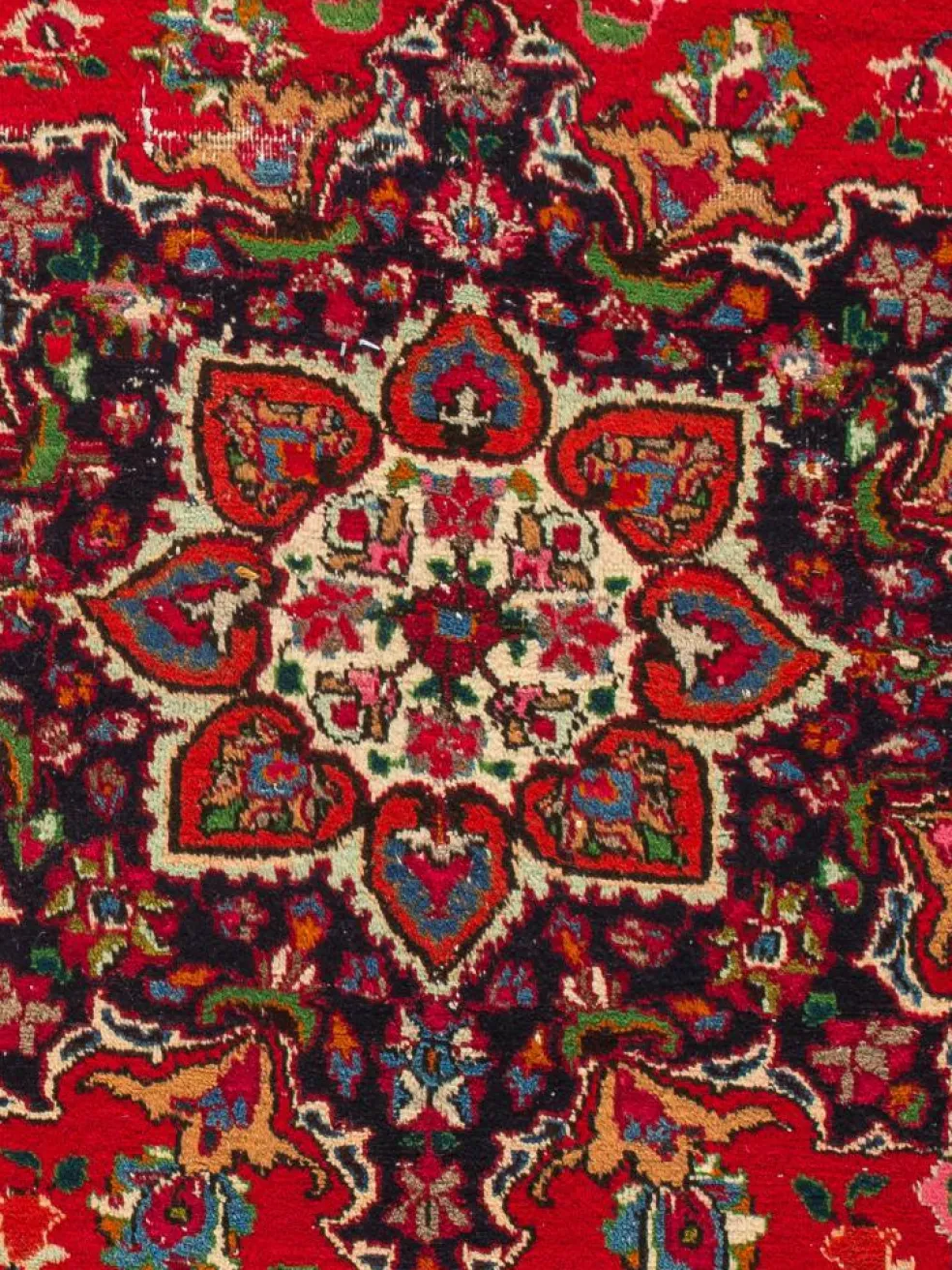 | Muster: | LexikonPalmetten Florales Musterdetail – es zeigt eine Blüte im Querschnitt ZUM LEXIKON Palmetten ,LexikonGabelranken Beliebtes florales Teppichornament pflanzlicher Herkunft ZUM LEXIKON Gabelranken ,LexikonMedaillon Primärornament im Mittelfeld des Teppichs ZUM LEXIKON Medaillon |
