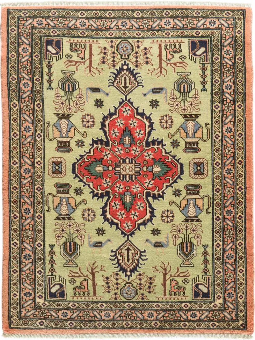 -Teppiche zeichnen sich durch den Formenreichtum sowie dem Stilisieren und Geometriesieren der traditionellen persischen Muster aus. Der Flor besteht aus guter strapazierfähigerWolle
