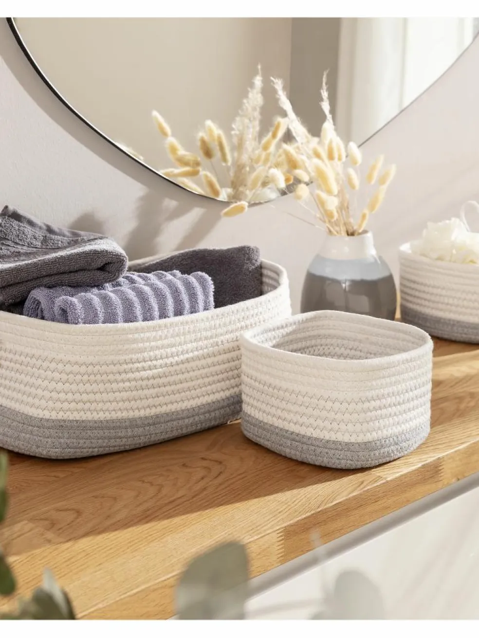 So ist Ordnung halten leicht und macht zusätzlich auch optisch einiges her. Die stabilen Polyesterstränge sind mit einem Baumwollgewebe umhüllt. Die moderne Farbkombination aus Weiß und Grau passt in die unterschiedlichsten Einrichtungsstile.