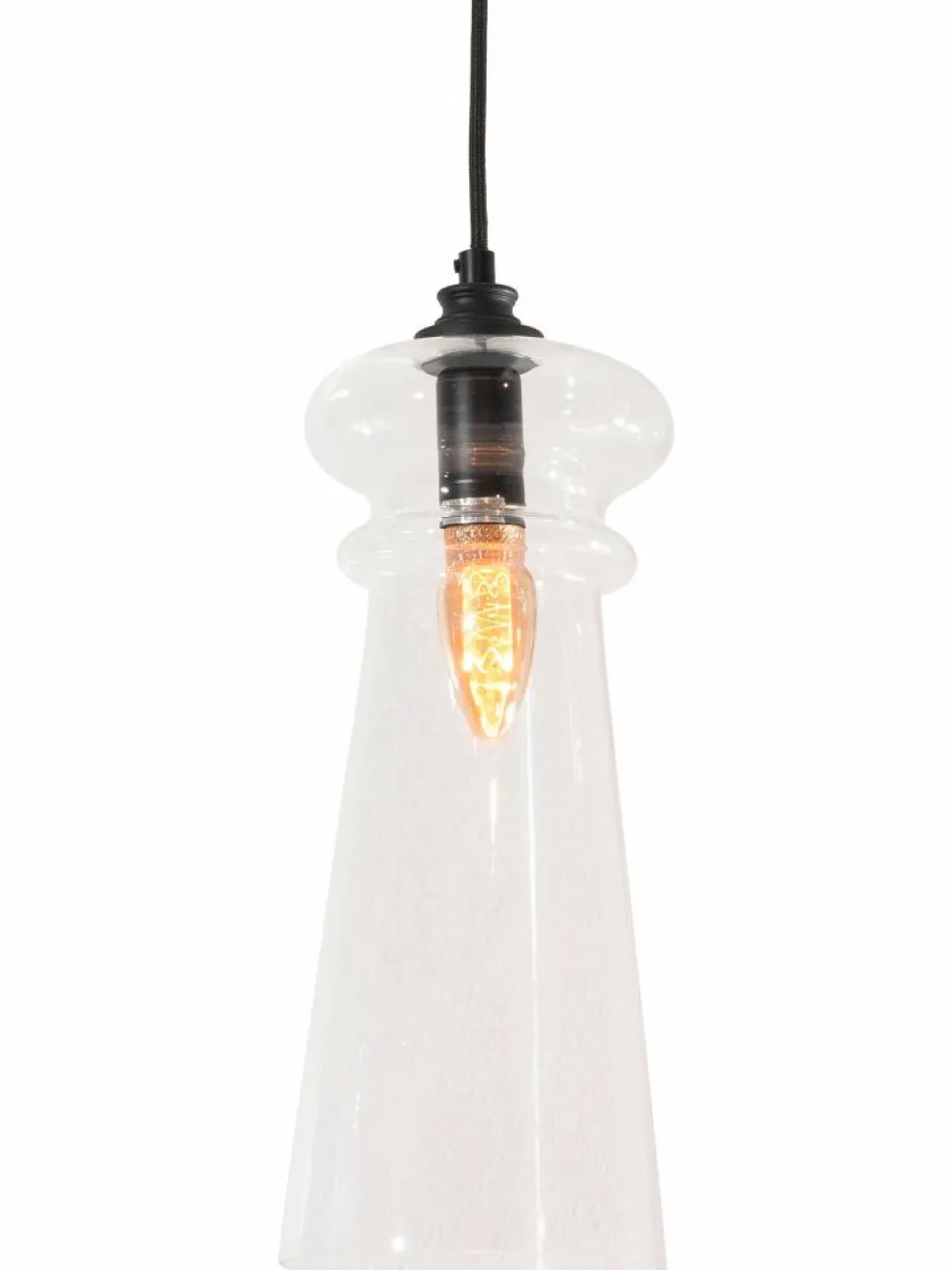 Bei dieser Hängelampe mit der außergewöhnlichen Glasform ist ein Highlight die Halterung der Fassung. Diese ist aus Kupfer und ist besonders präsent durch die Länge. Zusätzlich kann man durch die Wahl eines spezifischen Leuchtmittels mit der Fassungsgröße E 14 MOUSCRON inviduell aufwerten. Exkl. Leuchtmittel. Die Lampenschirmhöhe beträgt ca. 32 cm.