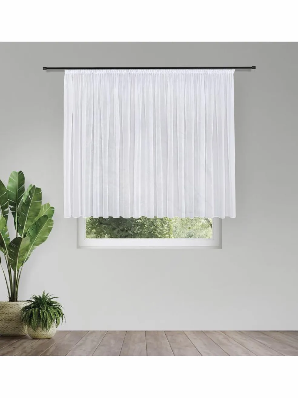 Eine elegante Fertig-Gardine mit Smokband in einem schönen Weiß. Durch die Auswahl aus drei Breiten und drei Höhen lässt sie sich flexibel an verschiedene Fenstergrößen anpassen. Hergestellt aus 100 % Polyester und bei bis zu 30 °C waschbar. Paket enthält je eine Gardine.