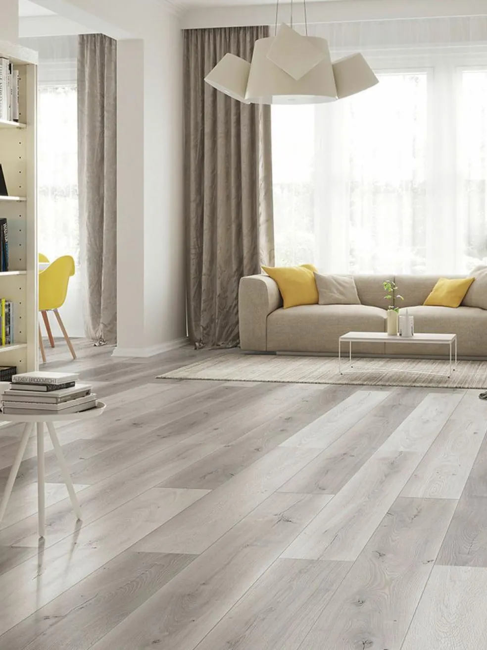 Dieser Laminat-Fußboden strahlt den authentischen Charme eines handwerklichen Holzbodens aus, denn seine Pluspunkte sind nicht nur die Wertigkeit der verwendeten Materialien, sondern auch die perfekte Verarbeitung. So sorgt seine feine V-Fuge an allen vier Seiten für ein detailgetreues Fugenbild und die fühlbare Oberflächenprägung entspricht der von echtem Holz. Zusätzlich ist der Boden wasserresistent.