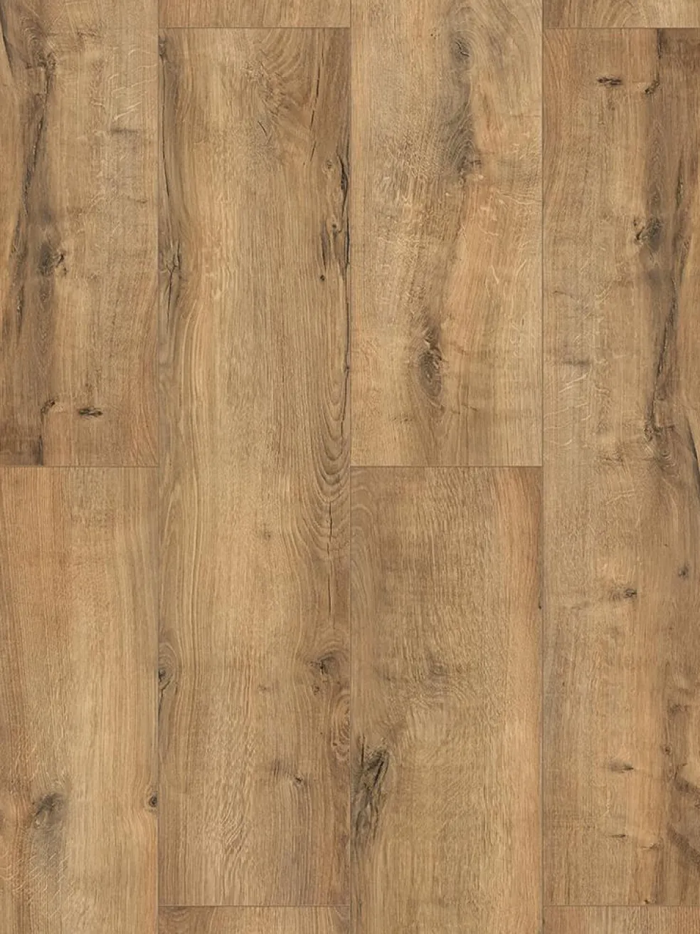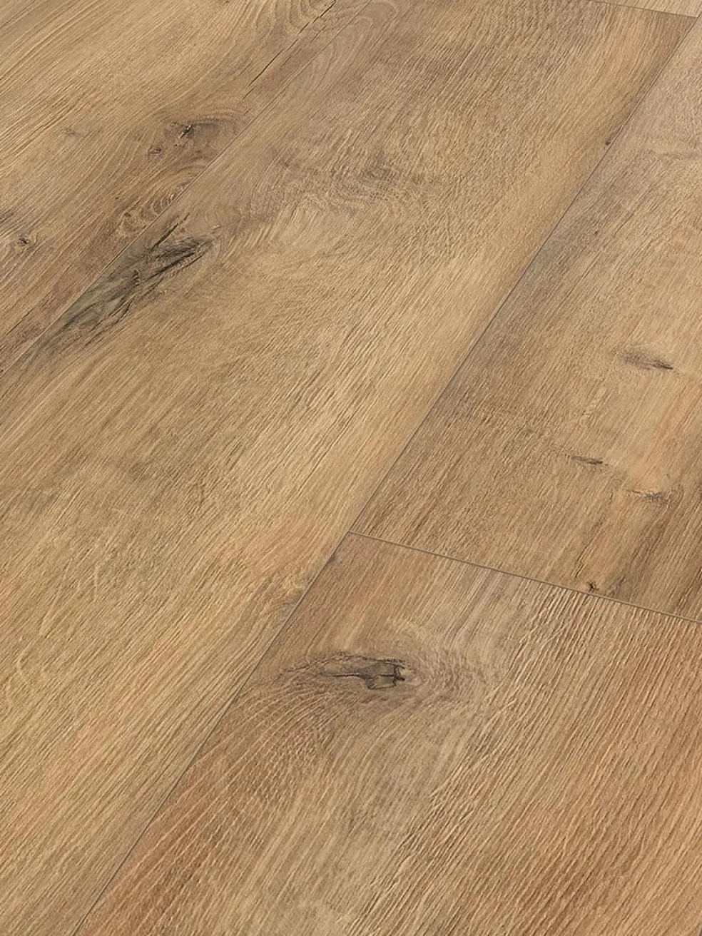 Die authentisch geprägte Oberflächenstruktur mit der dezenten Holzmaserung verstärkt die natürliche Optik dieses Landhausdielenbodens. Er hat eine Stärke von ca. 8 mm, eine Abriebgarantie von 25 Jahren und eignet sich damit für den Einsatz im gesamten Wohnbereich. Das Klicksystem erlaubt zudem ein schnelles und einfaches Verlegen. Nutzungsklasse 23/32, Stärke ca. 8 mm, Maße ca. 1285/280 mm.