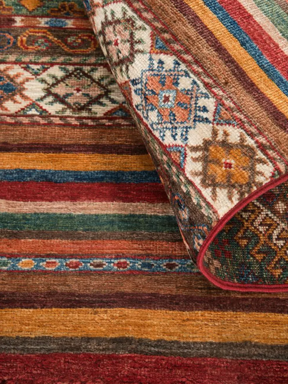 Schal sind farbenfrohe Orientteppiche mit Streifen in vielen verschiedenen Variationen. Einige Teppiche sind längs gestreift und andere quer. Vorbild für diese abwechslungsreichen Streifen ist das persischeMoharamati