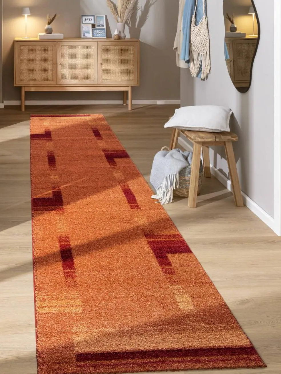 Dieser elegante Designer-Teppich zeichnet sich durch seine besondere Ausstrahlung aus. Seine warme Farbgebung harmoniert mit jeder modernen wie auch klassischen Einrichtung. Der sehr dichte Flor aus der bewährten Markenfaser Maclon schützt die Farben vor Ausblassung und sorgt für eine geschlossene Oberfläche, die den NIGHT LIFE unempfindlich gegen Schmutz macht. Die 3-teilige Bettumrandung besteht aus 1 x ca. 67/330 cm und 2 x ca. 67/130 cm. Wenn der Teppich nicht mehr als 50 % des Fußbodens eines Raumes bedeckt, ist er für Fußbodenheizung geeignet. Flor aus 100 % Polypropylen Maclon.
